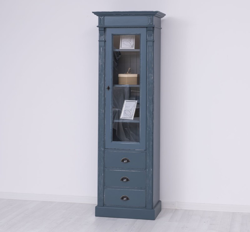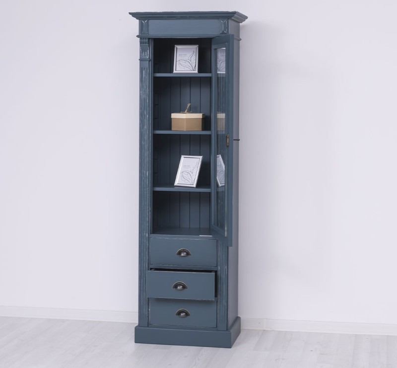 Vielseitige Vitrine 65 cm breit mit 3 Schubladen - Landhaus Vitrine