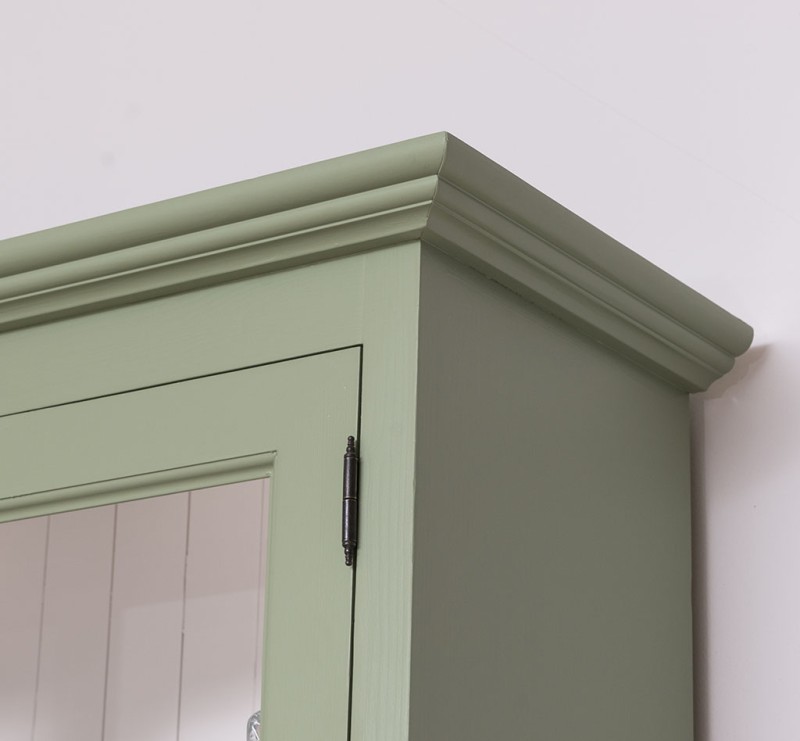 Erfreuen Sie sich an der klassischen Eleganz dieser Vitrine, welche nicht nur über drei Schubladen verfügt, sondern auch hinter den zwei Glastüren im oberen Teil Platz für Dekoration bietet. Diese Vitrine im Landhausstil ist ein hochwertiges, zeitloses Möbelstück, welches überall in Ihrem Haus einen prägenden Eindruck hinterlässt und eine gute Figur macht. Entdecken Sie die ideale Verbindung von Organisation und Präsentation. Dieses Möbelstück vereint auf elegante Weise Funktionalität und Ästhetik. Der Artikel wird in zwei Kartons geliefert. Der ober und untere Teil muss nur noch auf einander gesetzt werden. Abmessungen: H: 225 cm, B: 179 cm, T: 47 cm Außenfarbe - frei wählbar Innenfarbe - frei wählbar montiert Landhausstil 100% Massivholz 2 Teile verschiedene Farben wählbar Geben Sie bitte Ihre gewünschte Farbe für Innen & Außen beim Kauf im Kommentarfeld mit an. Oberflächen und Farben sind frei wählbar. 36 Farben und 8 Oberflächen (lackiert/gewachst/Natur usw.) - Andere Abmessungen und Sonderanfertigungen sind möglich. Bitte Fragen Sie uns.