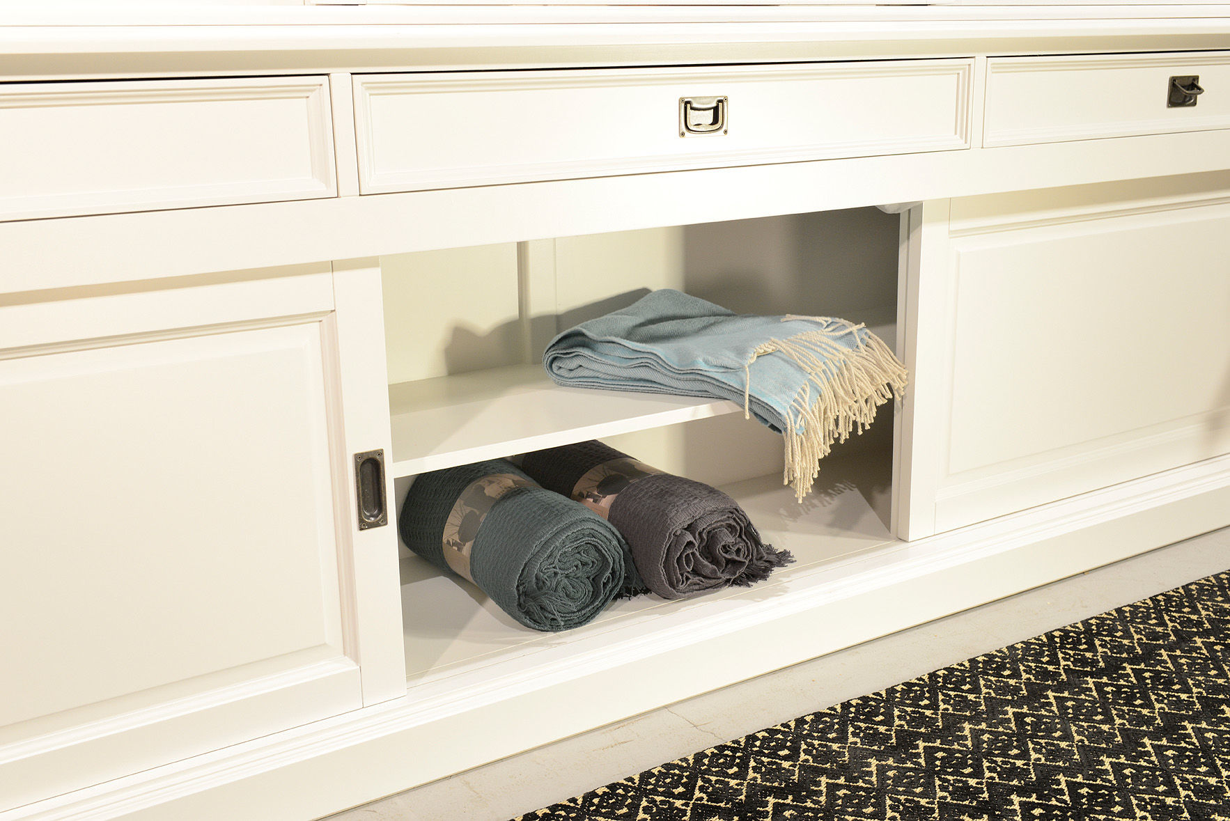 Landhaus Vitrinen Schrank mit Schiebetüren weiß 300cm