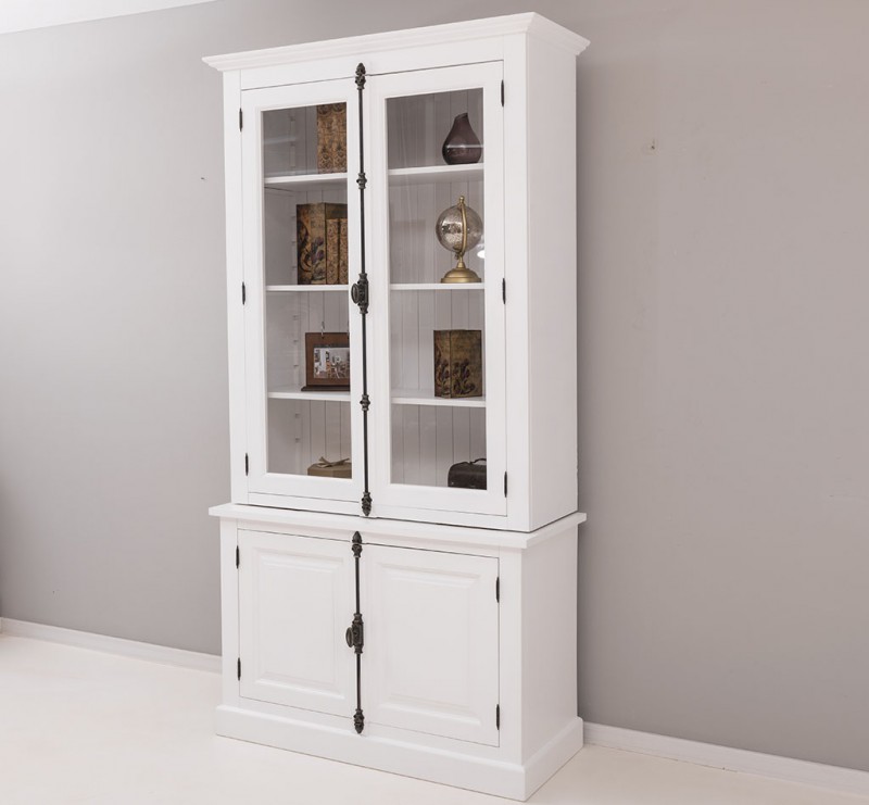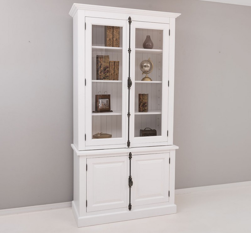 Rustikales Cremone-Eisenbesteck ziert diese Vitrine, verleihend ihr eine subtile Eleganz. Die richtigen Accessoires betonen den klassischen Charme von Massivholzmöbeln.