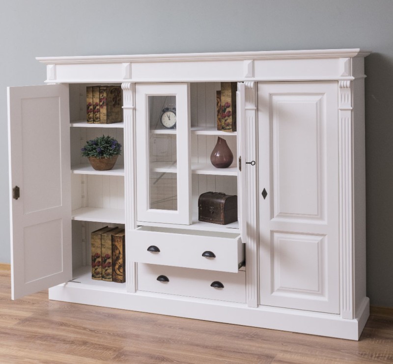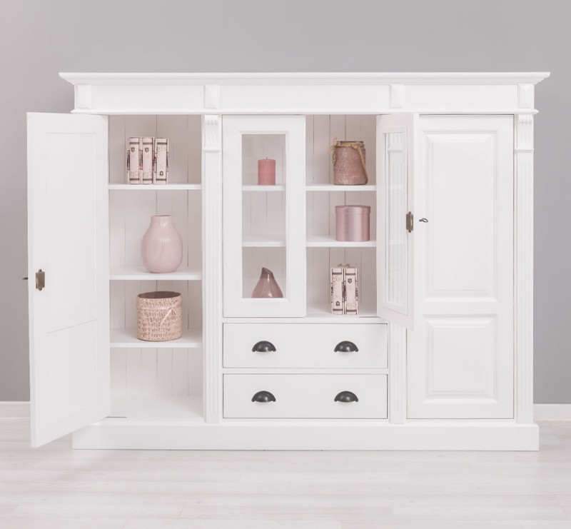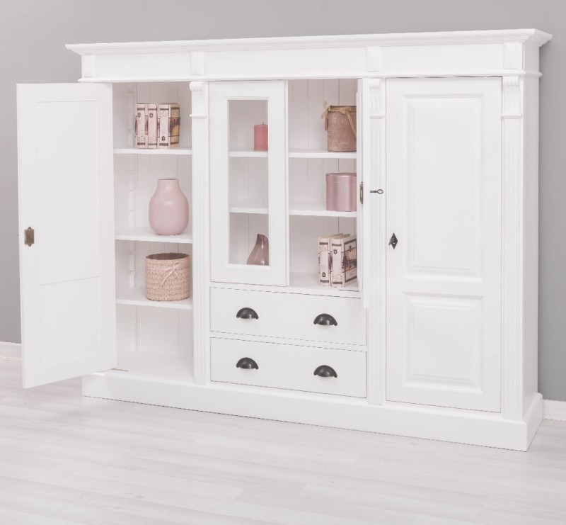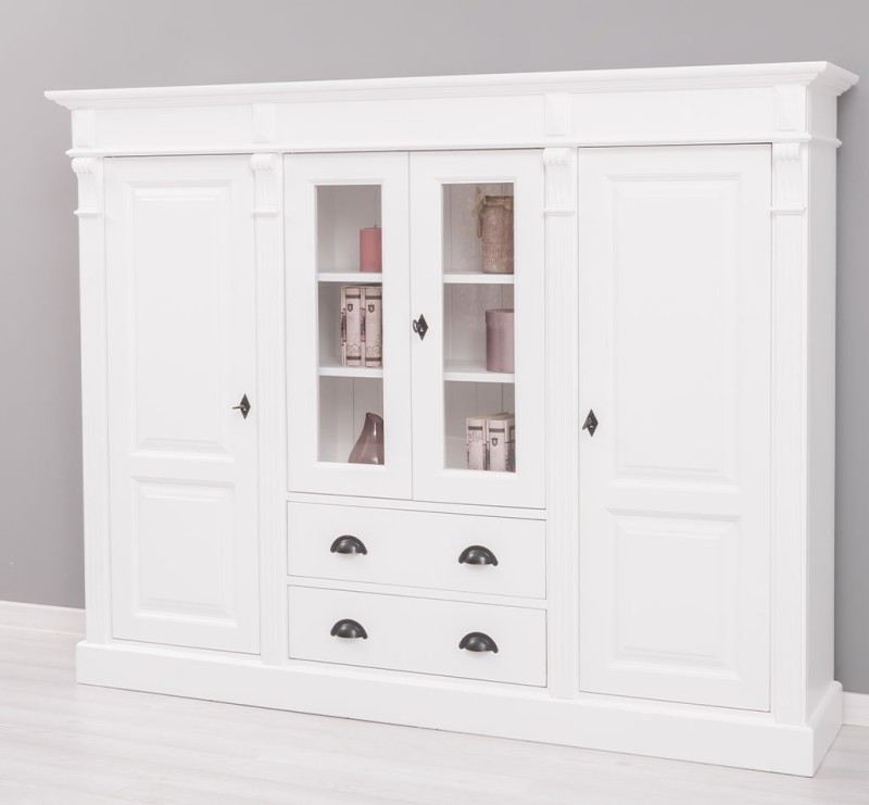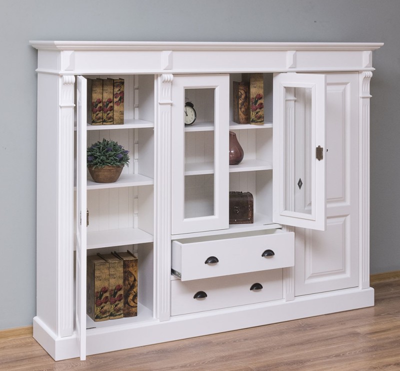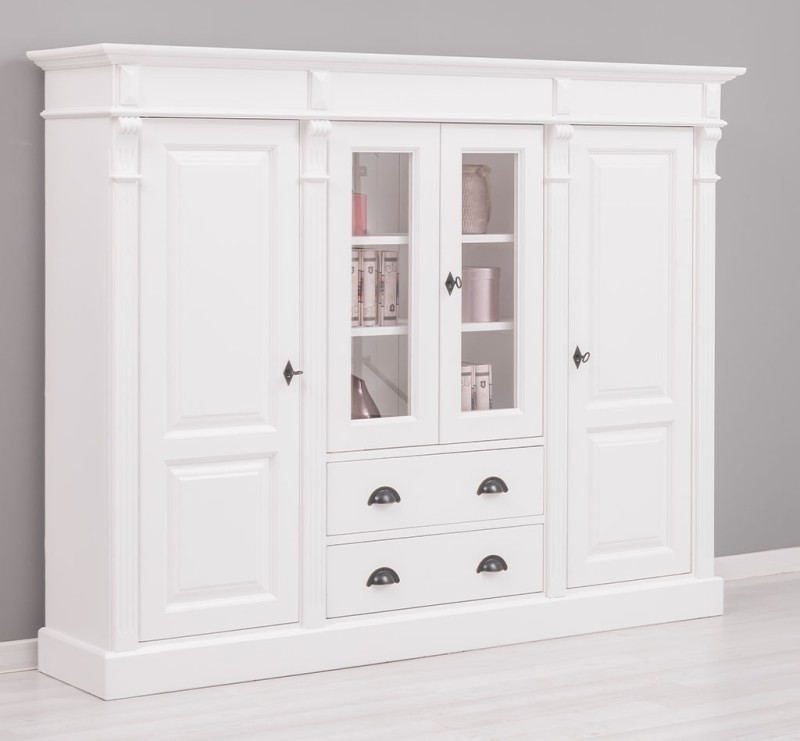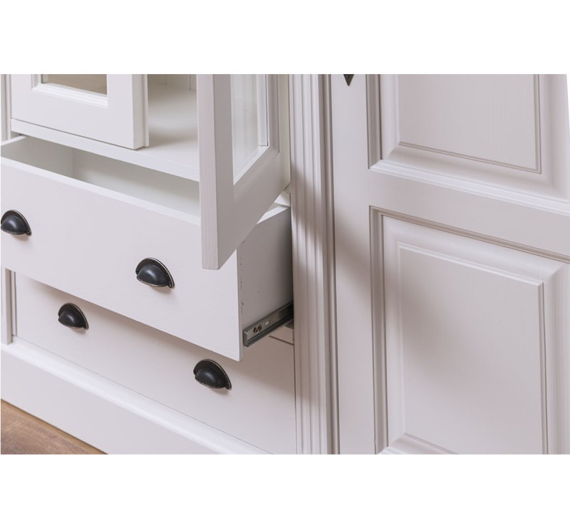 Vitrine mit je 2 Schubladen, Glastüren und geschlossenen Türen - Landhaus Vitrine