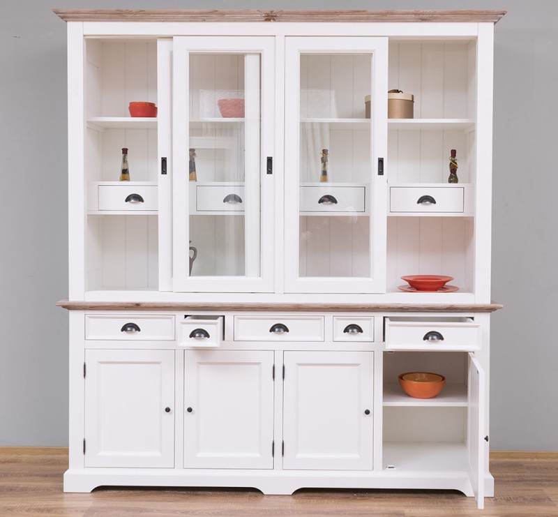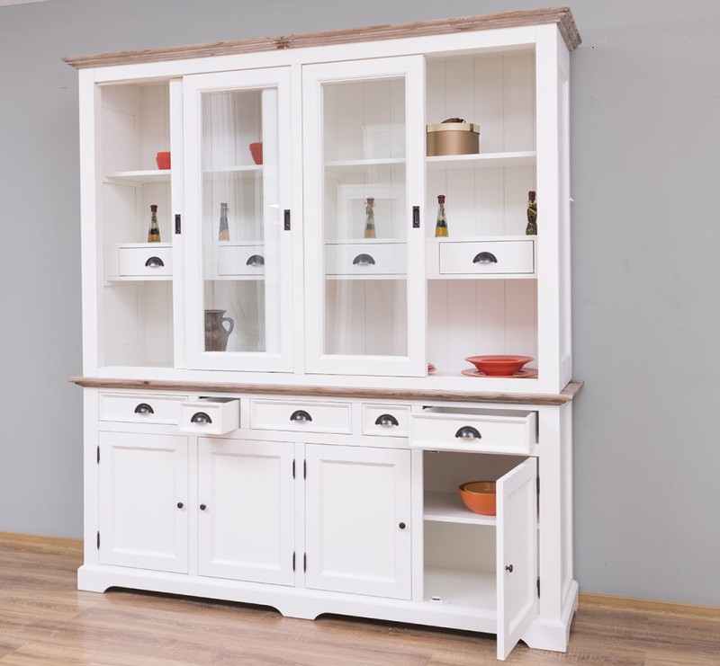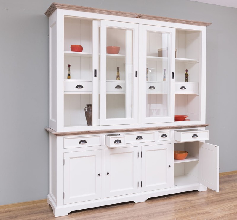 Vitrine mit 9 Schubladen, 4 geschlossenen Türen und 4 Glas Schiebetüren - Landhaus Vitrine