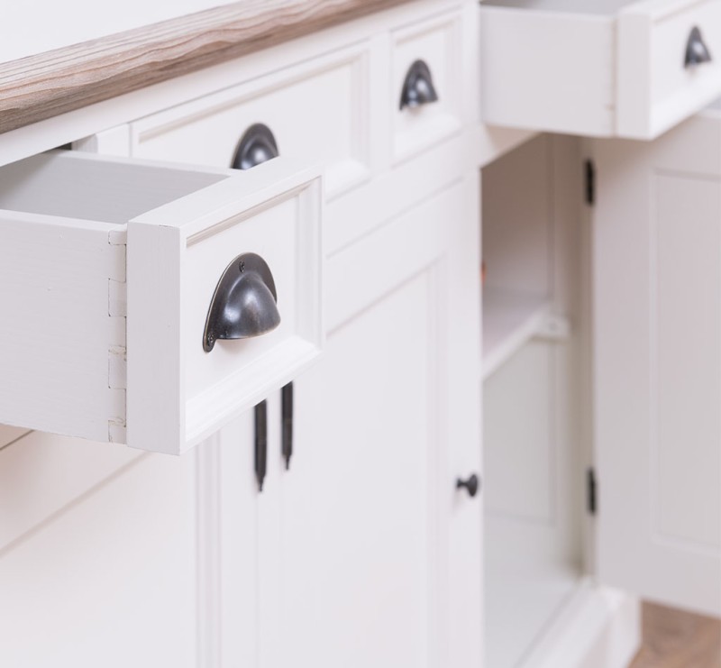 Küchenvitrine 179 cm breit mit Schubladen Landhaus Vitrine Wohnzimmerschrank