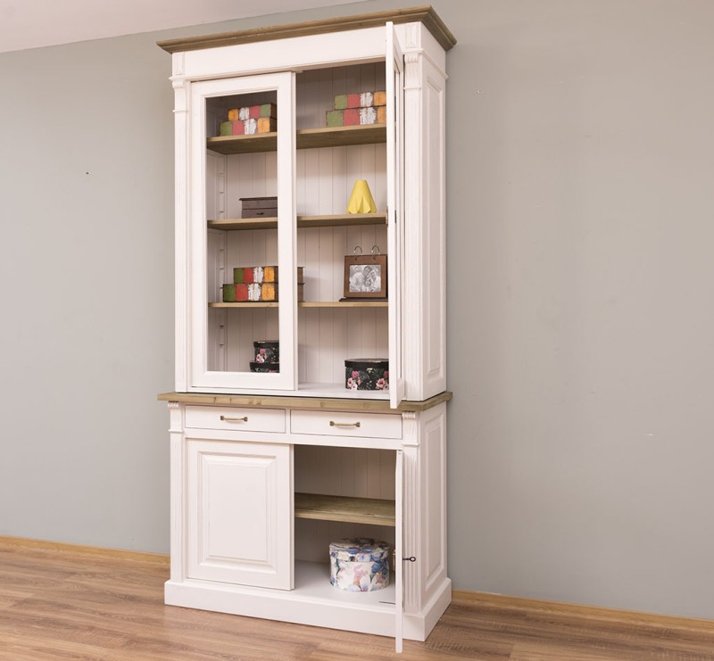 Vitrine mit 9 Schubladen, 4 geschlossenen Türen und 4 Glas Schiebetüren - Landhaus Vitrine