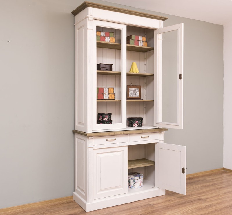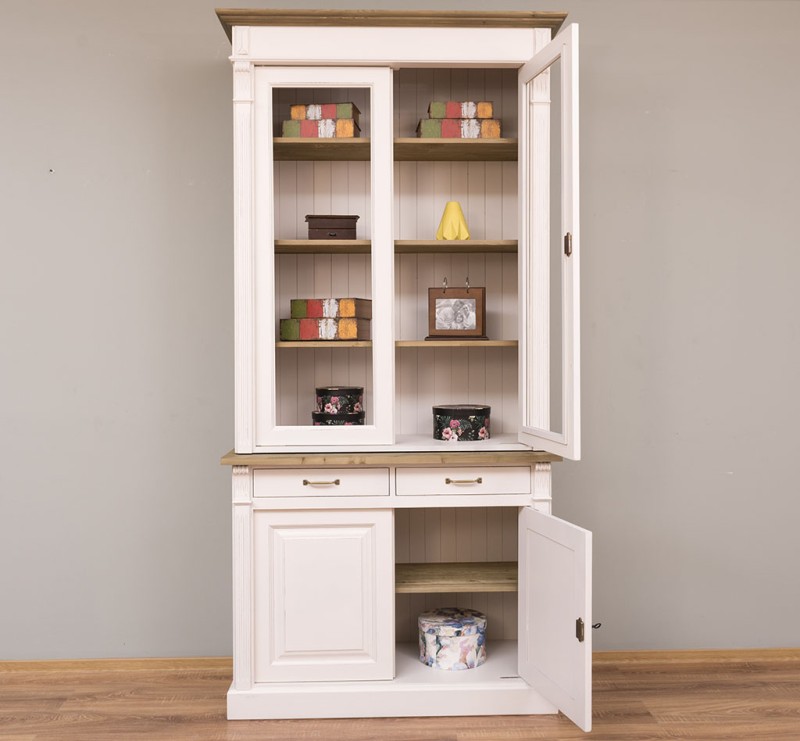 Küchenschrank mit je 4 Schubladen, geschlossenen Türen und Glastüren - Landhaus Vitrine
