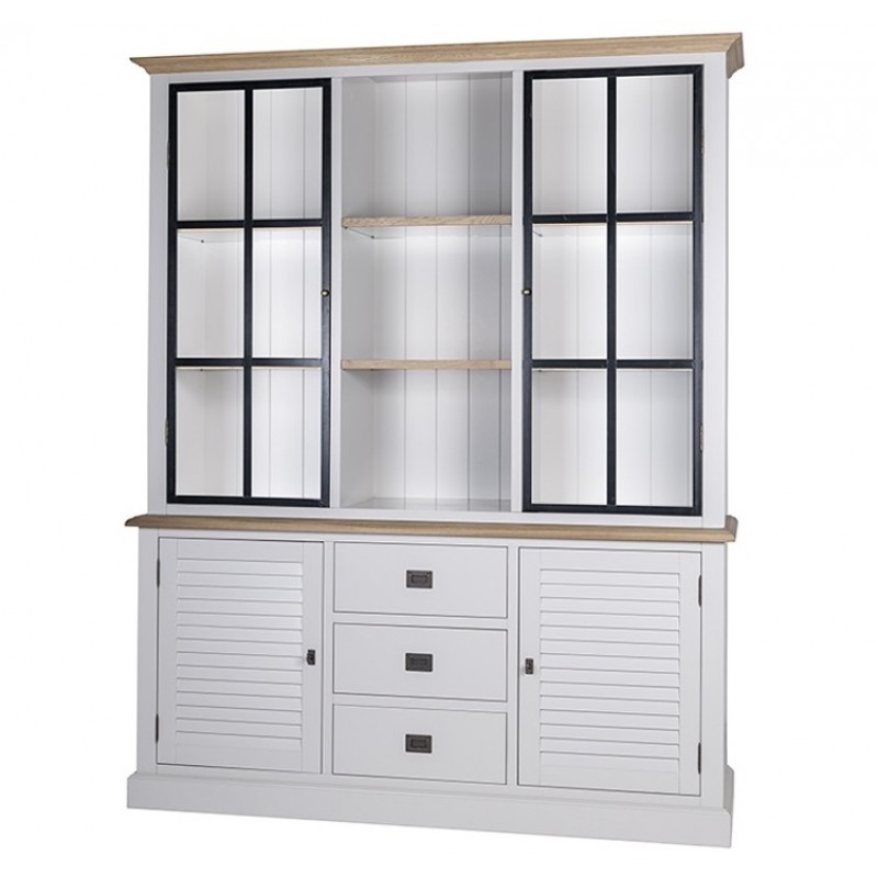 Produktinformationen "Geschirrschrank Landhaus weiß/eiche - Vitrinen Schrank mit Metallüren"