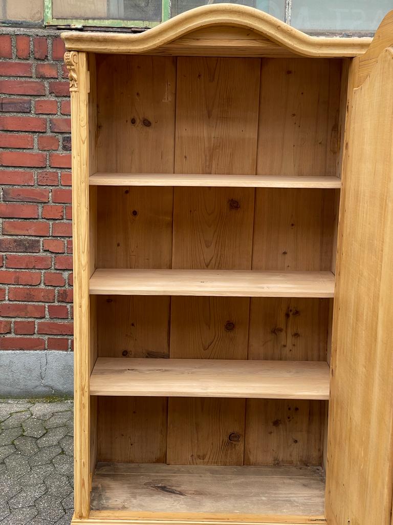 Ein schöner Gründerzeit Weichholz Schrank mit Innenausbau. Der Kleiderschrank wurde von Hand gewachst und aufpoliert. Farbe antikbraun / hönigton. Dieses Möbelstück wird nicht nur Ihr Eigenheim in neuem Glanz erstrahlen lassen, sondern durch seine Langlebigkeit und Anblick Sie auf Dauer erfreuen. Weichholzmöbel können teilweise Unebenheiten und kleine Spuren in Holz haben, die bewusst gewollt sind und den Charakter des Möbels unterstreichen. Der Schrank ist komplett aus Massivholz. Ein schöner Schrank für Ihr zu Hause!