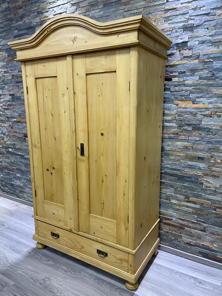 Ein alter Jugendstil Schrank aus Weichholz. Ideal für das Kinderzimmer oder die Diele geeignet. Mit Innenausbau. Der Schrank ist sehr praktisch und bietet viel Stauraum an. Der Schrank ist in unserer Fachwerkstatt restauriert worden und befindet sich in einem guten wohnfertigem Zustand. Bitte beachten Sie, dass es sich um ein antikes Möbelstück handelt. Der Schrank wurde von traditionellen Handwerkern handgefertigt. Die vorhandenen Gebrauchspuren haben einen antiken Charakter und sind bewusst gewollt. Ein Schrank der Sie ein Leben lang begleiten wird! Beschreibung Weichholz Schrank Naturwachs nicht zerlegbar Die Abmessungen: Höhe: 175 cm, Breite: 102 cm, Tiefe: 52 cm.