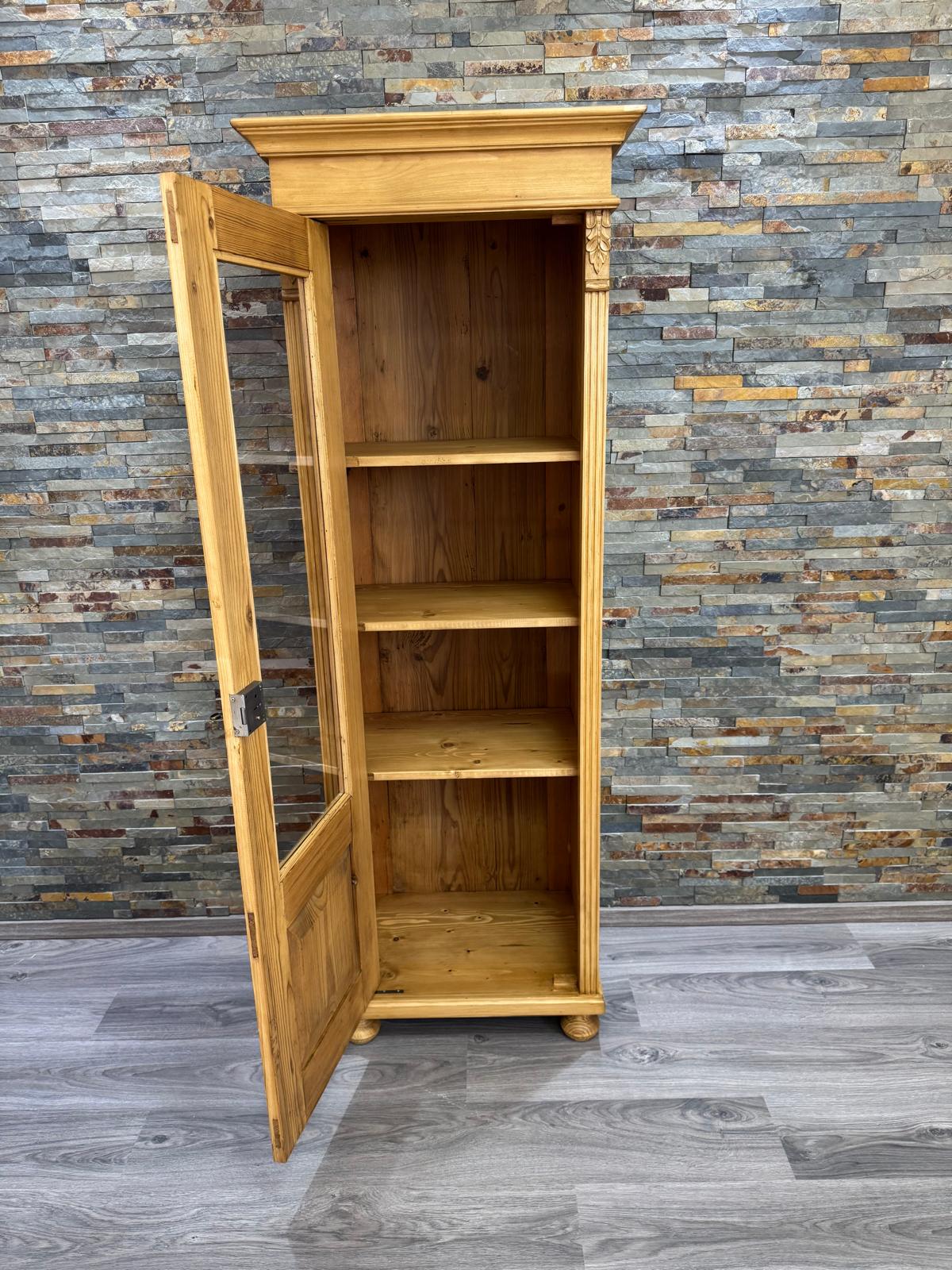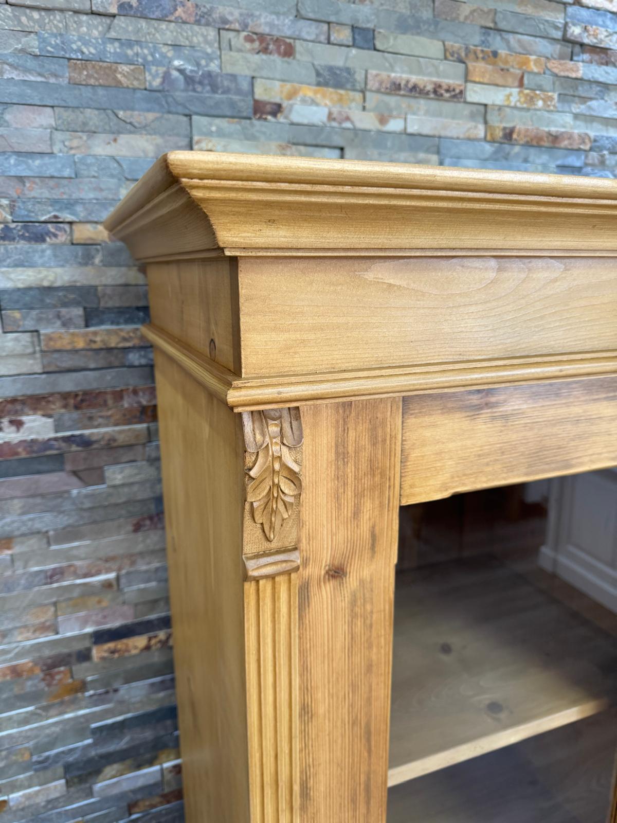 Ein schöner Jugendstil Vitrinenschrank mit Glas. Die Vitrine wurde mit hochwertigem Antikwachs behandelt und aufpoliert. Der Innenausbau beinhaltet stabile Regalböden. Der Schrank ist in unserer Fachwerkstatt gefertigt worden und lässt Sich sofort in Ihrer Wohnung integrieren. Die Vitrine im angesagtem Landhaus-Stil ist ein hochwertiges, zeitloses Möbelstück, welches überall in Ihrem Haus einen prägenden Eindruck hinterlässt. Der obere Stauraum mit viel Platz für Ideen und dekorative Accessoires.