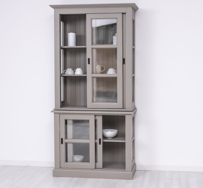 Produktinformationen "Küchenschrank mit Glasschiebetüren Massivholz Vitrine Landhaus"