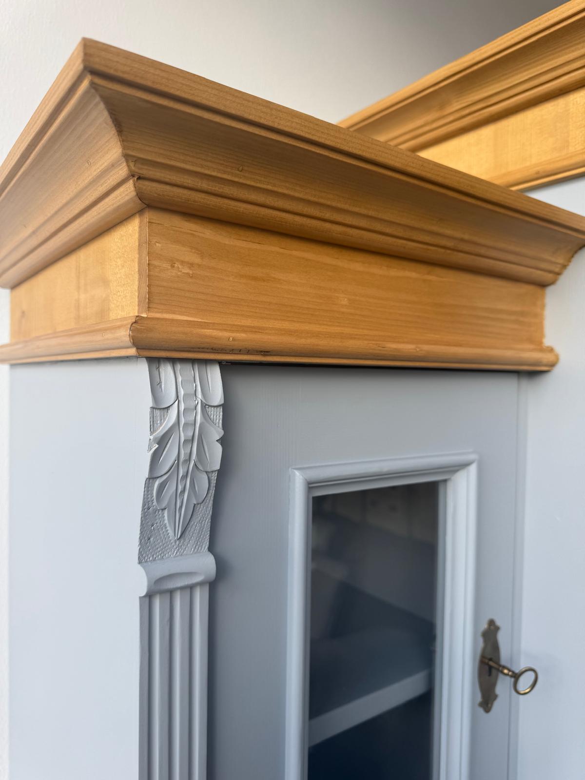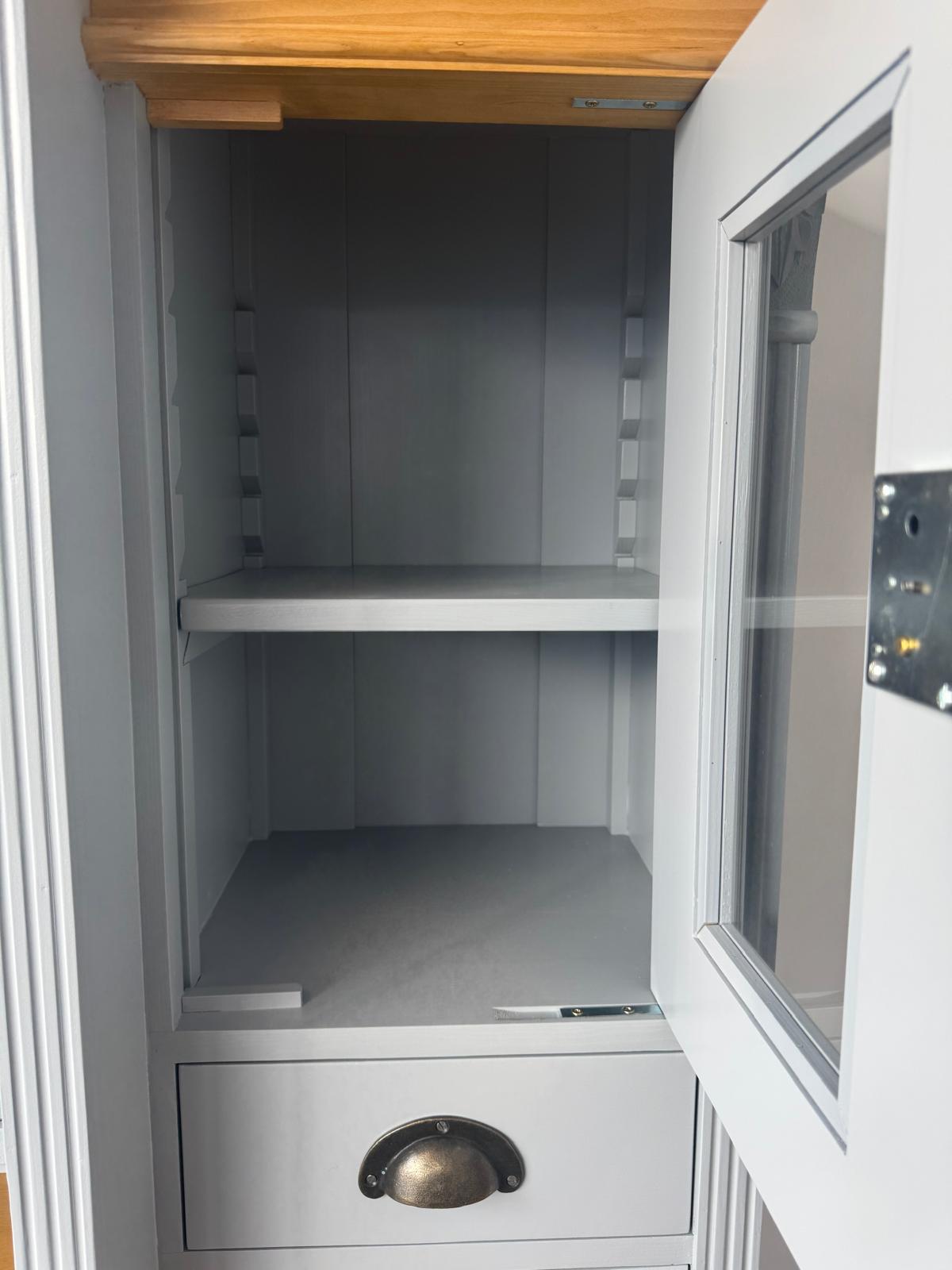 Dieser Küchenschrank wird aus 100 % Massivholz hergestellt. Die Vitrine bietet im oberen Teil hinter zwei Glastüren viel Präsentationsfläche aber auch einen zentralen offenen Raum mit Regalen, sowie großzügigen Stauraum im unteren Teil. Das Produkt wird montiert in zwei separaten Paketen geliefert, die nur aufeinandergestellt werden müssen, und die sehr solide Konstruktion ermöglicht eine sehr lange Nutzung. Sie werden es Ihnen mit ihrer hervorragenden Qualität und ihrem beeindruckenden Design danken. Abmessungen: H/B/T: 197x180x50 cm Außenfarbe - frei wählbar Innenfarbe - frei wählbar montiert Landhausstil 100% Massivholz 2 Teile verschiedene Farben wählbar Geben Sie bitte Ihre gewünschte Farbe für Innen & Außen beim Kauf im Kommentarfeld mit an. Oberflächen und Farben sind frei wählbar. 36 Farben und 8 Oberflächen (lackiert/gewachst/Natur usw.) - Andere Abmessungen und Sonderanfertigungen sind möglich. Bitte Fragen Sie uns.