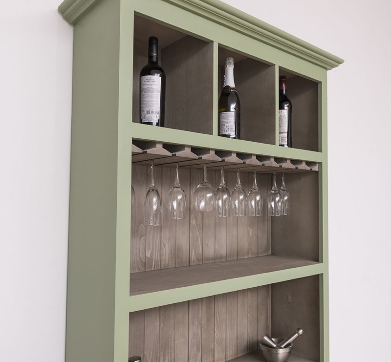 Dieser Barschrank im Landhausstil ist ein hochwertiges, zeitloses Möbelstück, welches in Ihrem Haus einen prägenden Eindruck hinterlässt und eine gute Figur macht. Das Möbelstück vereint auf elegante Weise Funktionalität und Ästhetik. Es bietet Stauraum in einer großen Schublade und bietet viel Platz für ihre Weinflaschen im unteren Teil. Zusätzlich bietet es im oberen Teil mit zwei Glasauflageböden und einem offenen Fach großzügige Präsentationsfläche. Das Design dieses Möbelstücks strahlt zeitlose Eleganz aus und passt sich nahtlos in verschiedene Einrichtungsstile ein. Es ist das perfekte Highlight für diejenigen, die sowohl praktische Lösungen als auch raffinierten Stil suchen. Mit seiner exzellenten Verarbeitung garantiert dieser Schrank Langlebigkeit und Beständigkeit. Er überzeugt nicht nur mit praktischen Lösungen, sondern wird auch Ihre Freude und Bewunderung langfristig erhalten. Abmessungen: H: 210 cm, B: 78 cm, T: 41 cm Korpusfarbe - frei wählbar Innenfarbe - frei wählbar Massivholz Möbel Korpus 100% Kiefernholz Beschläge/Griffe wählbar Schublade mit Soft-Close Landhausstil Fertig montiert - 1-Teil Oberflächen und Farben sind frei wählbar. 36 Farben und 8 Oberflächen (lackiert/gewachst/natur usw.) - Andere Abmessungen und Sonderanfertigungen sind möglich. Bitte Fragen Sie uns.