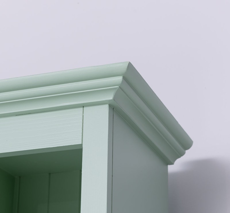 Dieser Barschrank im Landhausstil ist ein hochwertiges, zeitloses Möbelstück, welches in Ihrem Haus einen prägenden Eindruck hinterlässt und eine gute Figur macht. Das Möbelstück vereint auf elegante Weise Funktionalität und Ästhetik. Es bietet Stauraum hinter zwei Schiebetüren im unteren Bereich, sowie in den vier Schubladen. Zusätzlich bietet es im oberen Teil mit zwei festen Regalen, einem Glasauflageboden und drei Fächern für Flaschen eine großzügige Präsentationsfläche. Das Design dieses Möbelstücks strahlt zeitlose Eleganz aus und passt sich nahtlos in verschiedene Einrichtungsstile ein. Es ist das perfekte Highlight für diejenigen, die sowohl praktische Lösungen als auch raffinierten Stil suchen. Mit seiner exzellenten Verarbeitung garantiert dieser Schrank Langlebigkeit und Beständigkeit. Er überzeugt nicht nur mit praktischen Lösungen, sondern wird auch Ihre Freude und Bewunderung langfristig erhalten. Abmessungen: H: 210 cm, B: 103 cm, T: 36 cm Korpusfarbe - frei wählbar Innenfarbe - frei wählbar Massivholz Möbel Korpus 100% Kiefernholz Landhausstil Fertig montiert - 1-Teil Oberflächen und Farben sind frei wählbar. 36 Farben und 8 Oberflächen (lackiert/gewachst/natur usw.) - Andere Abmessungen und Sonderanfertigungen sind möglich. Bitte Fragen Sie uns.