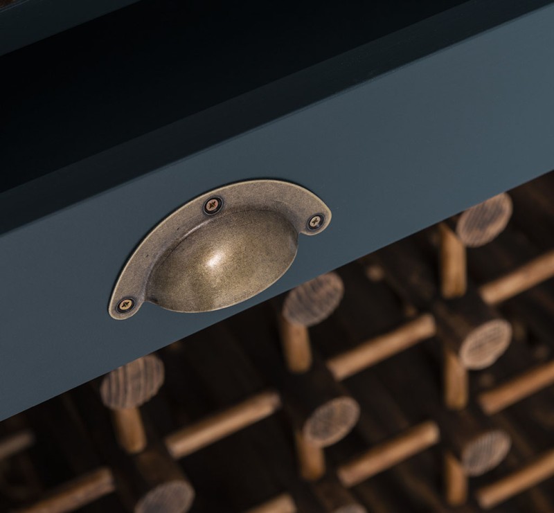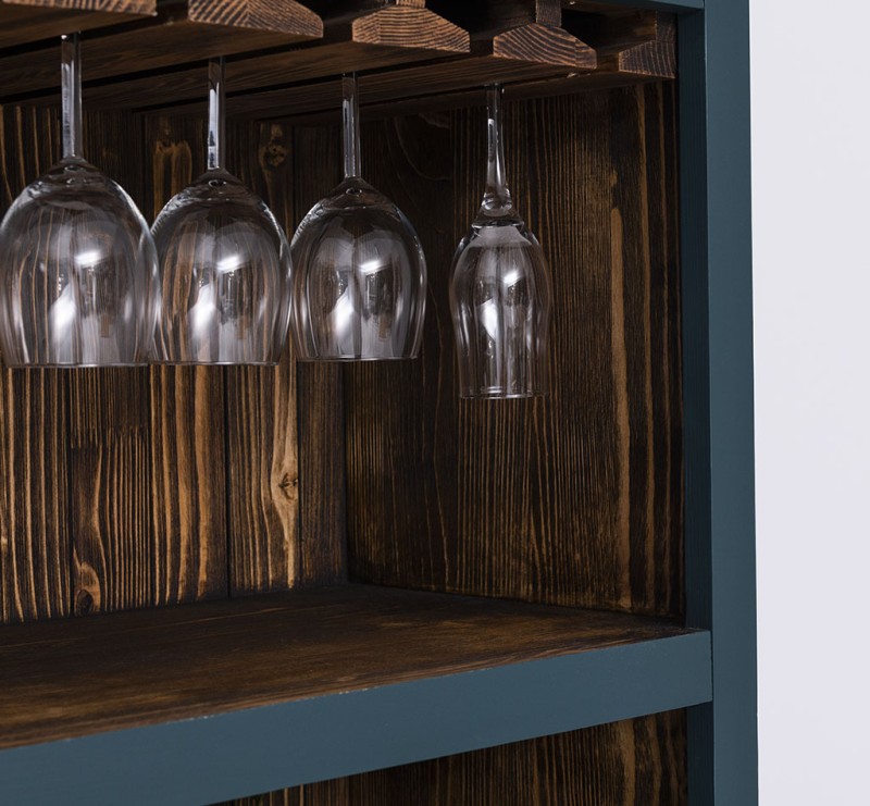 Dieser Barschrank im Landhausstil ist ein hochwertiges, zeitloses Möbelstück, welches in Ihrem Haus einen prägenden Eindruck hinterlässt und eine gute Figur macht. Das Möbelstück vereint auf elegante Weise Funktionalität und Ästhetik. Es bietet Stauraum in einer großen Schublade und bietet viel Platz für ihre Weinflaschen im unteren Teil. Zusätzlich bietet es im oberen Teil mit zwei Glasauflageböden und einem offenen Fach großzügige Präsentationsfläche.
