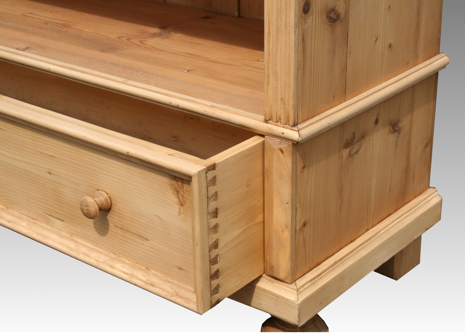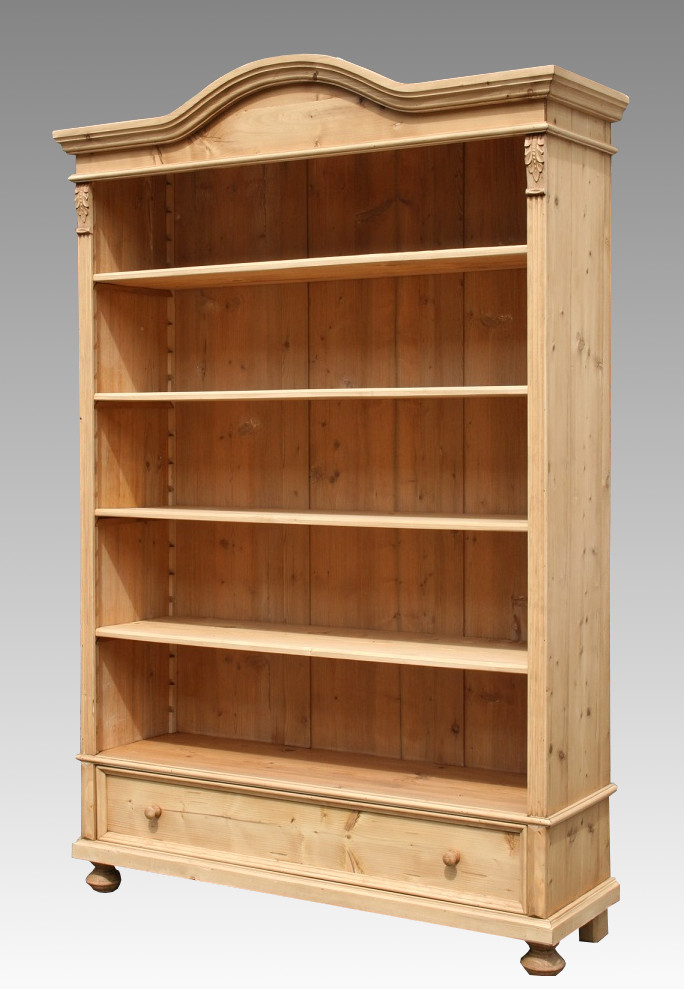 Ein schönes Weichholz Regal. Das Bücherregal hat verstellbare Einlegeböden und eine große Schublade. Das Regal wurde aus recyceltem Altholz (alte Schränke aus der Gründerzeit/Jugendstil) gebaut und hat dadurch sein eigenen Charme. Die Holzoberfläche wurde von Hand mit Bienenwachs behandelt und aufpoliert.