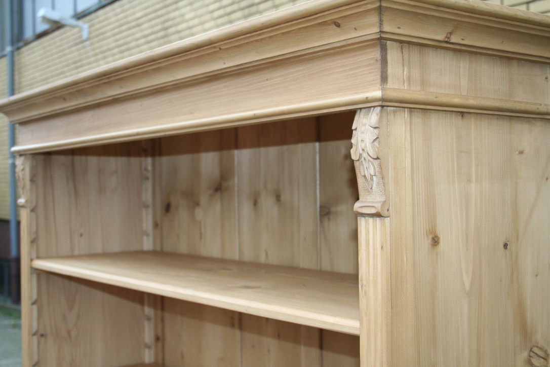 Ein Weichholz Regal im Jugendstil aus Altholz gebaut. Das Regal wurde aus alten Jugendstil Schränken zum Regal umgebaut. Die Holzoberfläche ist mit natürlichen Wachs behandelt und von Hand aufpoliert. 4 Fachböden verstellbar 1 Schublade Die Abmessungen: ca. Höhe: 182 cm, Breite: 90 cm, Tiefe: 41 cm.