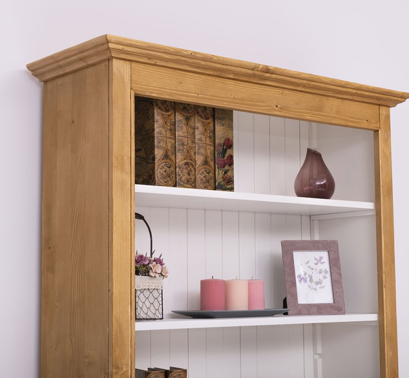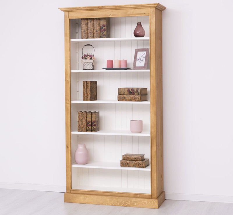 Landhaus Regal Entdecken Sie die ideale Verbindung von Organisation und Präsentation mit unserem vielseitigen Bücherregal. Dieses Möbelstück vereint auf elegante Weise Funktionalität und Ästhetik. Unser Bücherregal bietet großzügigen Stauraum und ermöglicht gleichzeitig die ansprechende Präsentation Ihrer Lieblingsstücke. Das Design dieses Möbelstücks strahlt zeitlose Eleganz aus und passt sich nahtlos in verschiedene Einrichtungsstile ein. Es ist das perfekte Highlight für diejenigen, die sowohl praktische Lösungen als auch raffinierten Stil suchen. Mit seiner exzellenten Verarbeitung garantiert dieses Bücherregal Langlebigkeit und Beständigkeit. Es überzeugt nicht nur mit praktischen Lösungen, sondern wird auch Ihre Freude und Bewunderung langfristig erhalten. Abmessungen: H: 210 cm, B: 110 cm, T: 39 cm Massivholz Möbel Landhausstil 100% Kiefernholz Einlegeböden verstellbar Fertig montiert - 1 Teil Oberflächen und Farben sind frei wählbar. 36 Farben und 8 Oberflächen (lackiert/gewachst/natur usw.) - Andere Abmessungen und Sonderanfertigungen sind möglich. Bitte Fragen Sie uns.