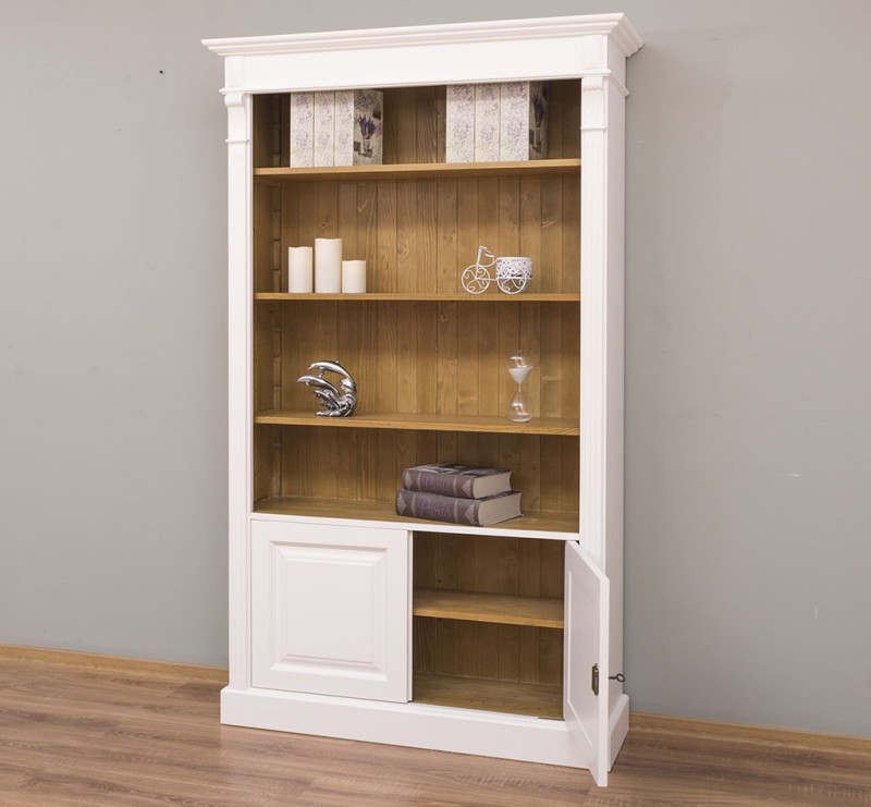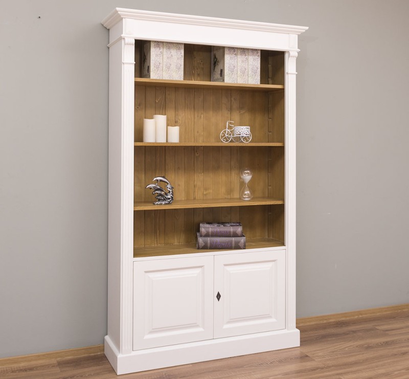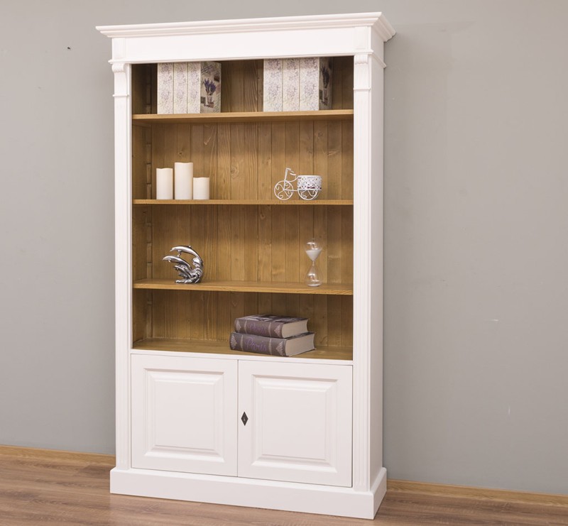 Entdecken Sie die perfekte Kombination von Stauraum und Präsentationsfläche mit unserem vielseitigen Bücherregal. Dieses Möbelstück bietet nicht nur auf den Regalböden viel Platz für Ihre Büchersammlung oder Dekorationsobjekte, sondern verfügt auch über einen geschlossenen Bereich hinter zwei massiven Türen. Unser Bücherregal mit einem offenem und einem geschlossenen Bereich verbindet die Freiheit der Gestaltung Ihrer Wohnräume mit einem ästhetischen Design. Es ermöglicht Ihnen, sowohl Ihre wertvollsten Besitztümer zu präsentieren als auch private Gegenstände ordentlich zu verstauen. Die Regalböden erlauben Ihnen die stilvolle Präsentation Ihrer Lieblingsbücher oder Dekorationen, während die geschlossene Türen diskreten Stauraum für persönliche Gegenstände bieten. Diese ausgewogene Kombination schafft ein ansprechendes visuelles Gleichgewicht. Das Design dieses Möbelstücks fügt sich harmonisch in verschiedene Einrichtungsstile ein. Es passt sowohl in moderne als auch klassische Umgebungen und verleiht jedem Raum einen Hauch von Eleganz. Die erstklassige Verarbeitung garantiert Langlebigkeit und Zuverlässigkeit. Dieses Bücherregal wird nicht nur Ihre Räume bereichern, sondern auch langfristige Zufriedenheit und Bewunderung schenken. Abmessungen: H: 210 cm, B: 110 cm, T: 39 cm Massivholz Möbel Landhausstil 100% Kiefernholz Fertig montiert - 1-Teil Oberflächen und Farben sind frei wählbar. 36 Farben und 8 Oberflächen (lackiert/gewachst/natur usw.) - Andere Abmessungen und Sonderanfertigungen sind möglich. Bitte Fragen Sie uns.