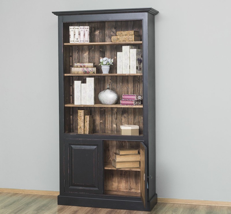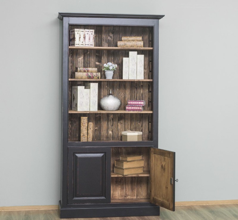 Bücherregal mit 2 massiven Türen und Regalfläche - Landhaus Regal