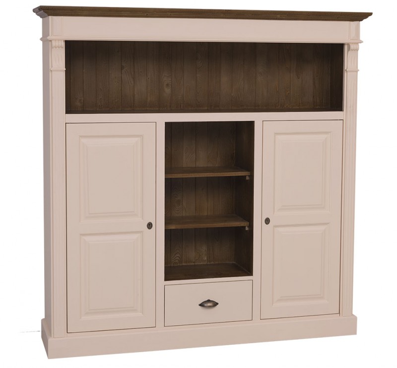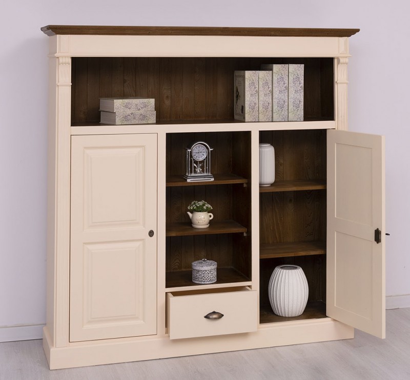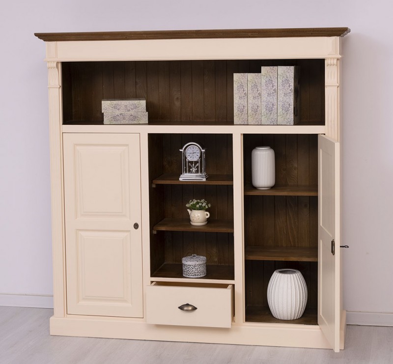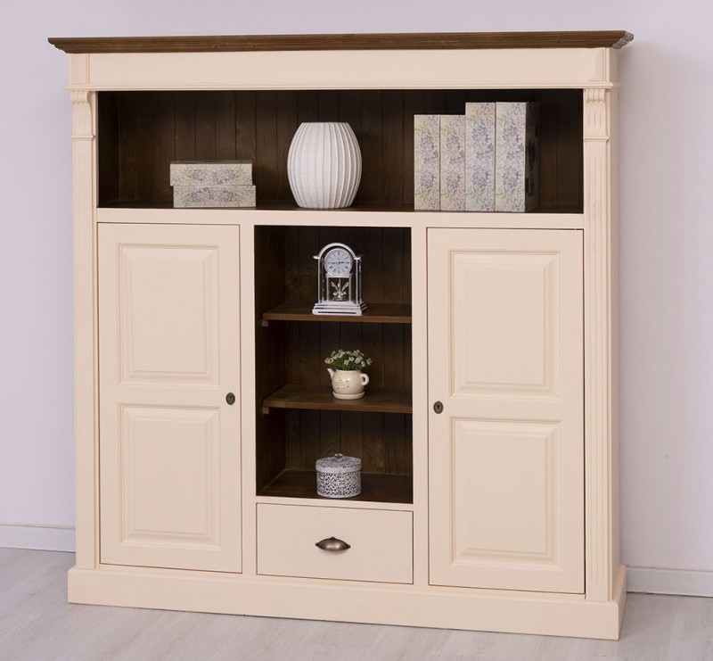 Bücherregal mit 1 Schublade, Regalböden und 2 geschlossenen Türen - Landhaus Schrank