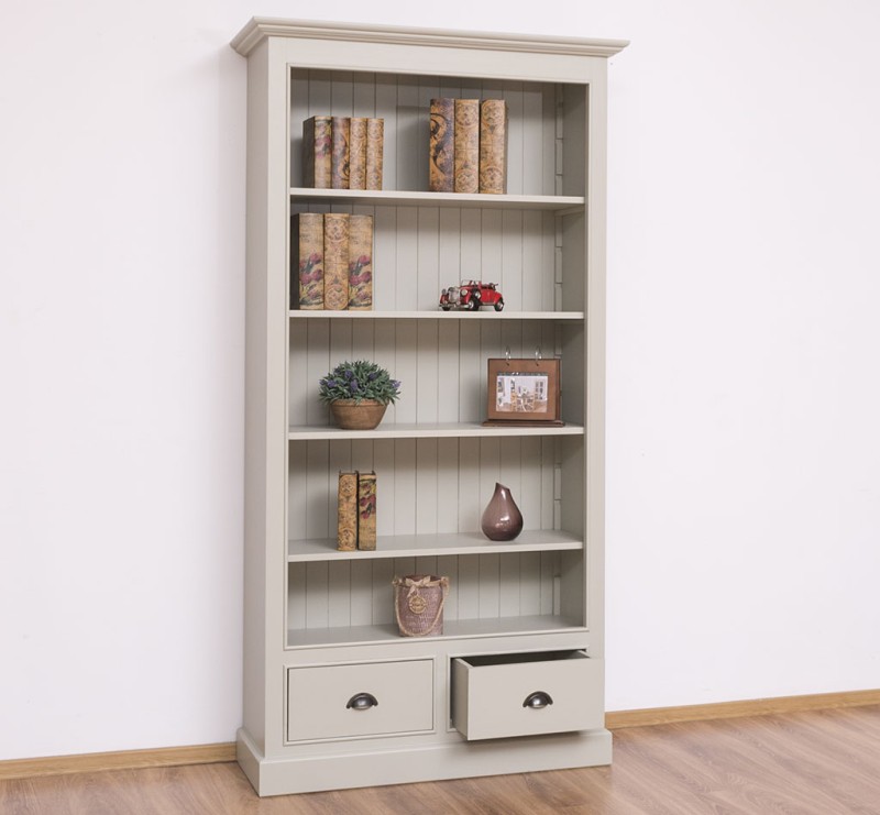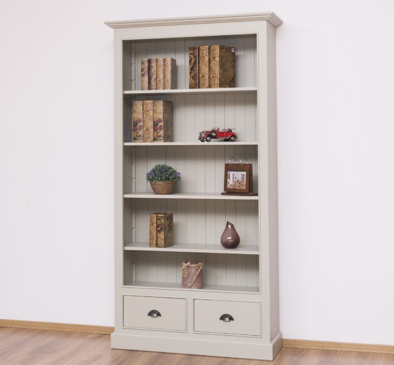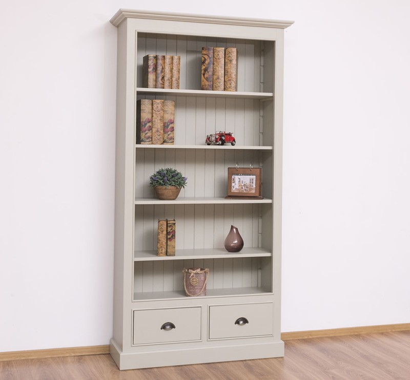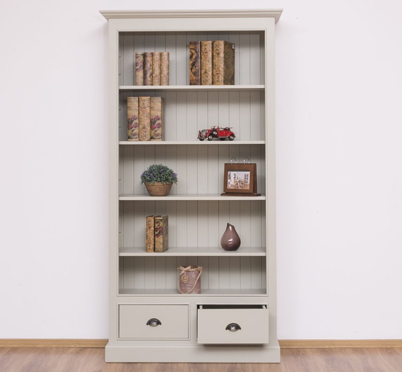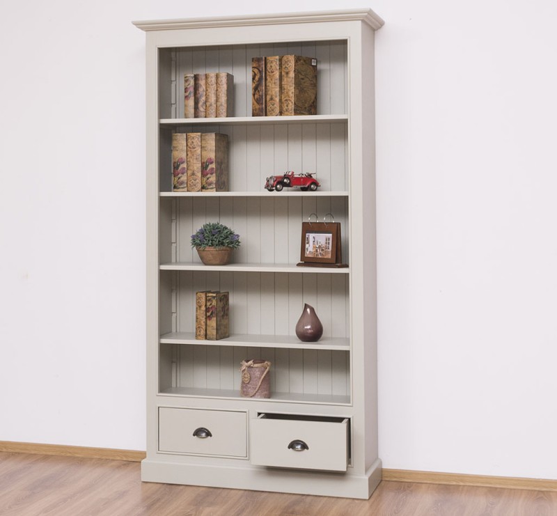 Bücherregal mit verstellbaren Regalböden und 2 Schubladen - Landhaus Regal