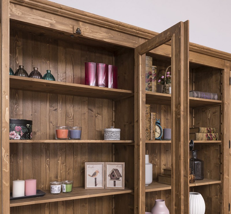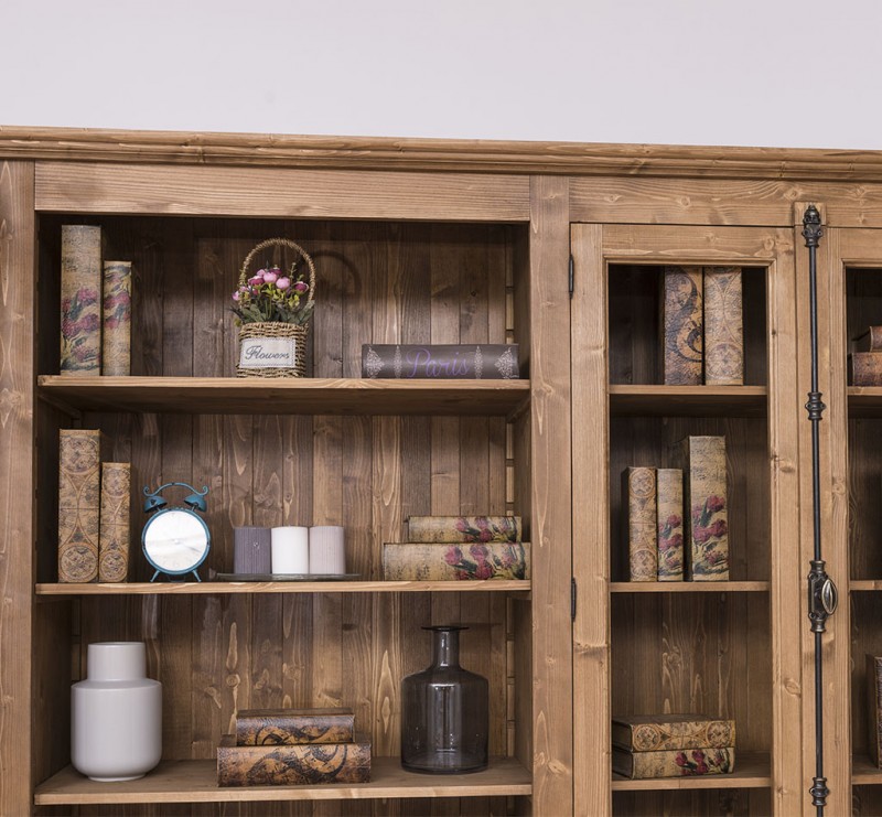 Große Bücherwand im Landhaus Stil mit 4 Glastüren 300 cm