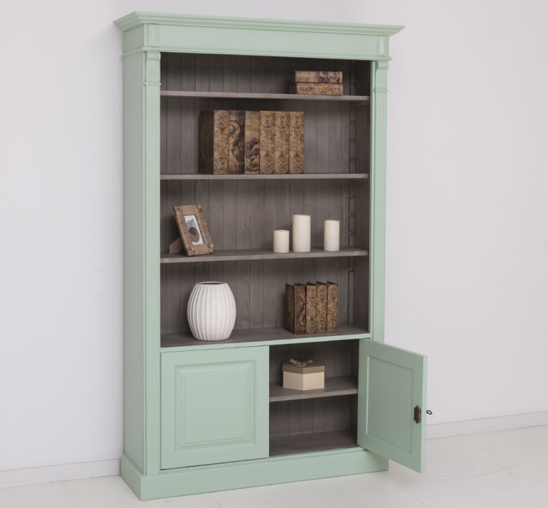 Massives Bücherregal mit 2 Türen und Regalfläche - Landhaus Regal verschiedene Farben