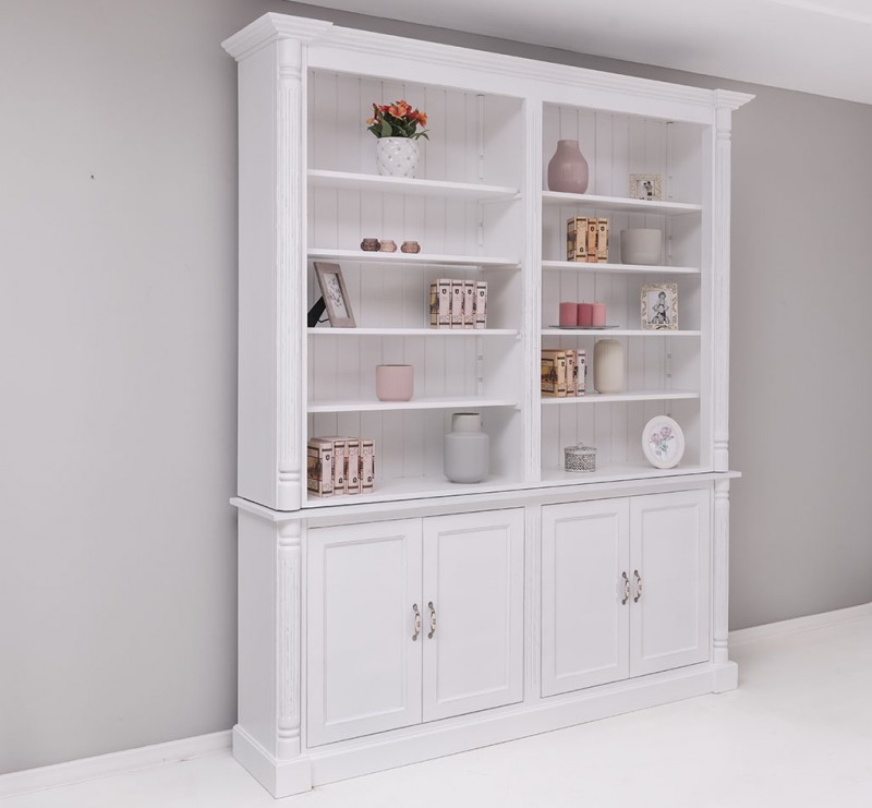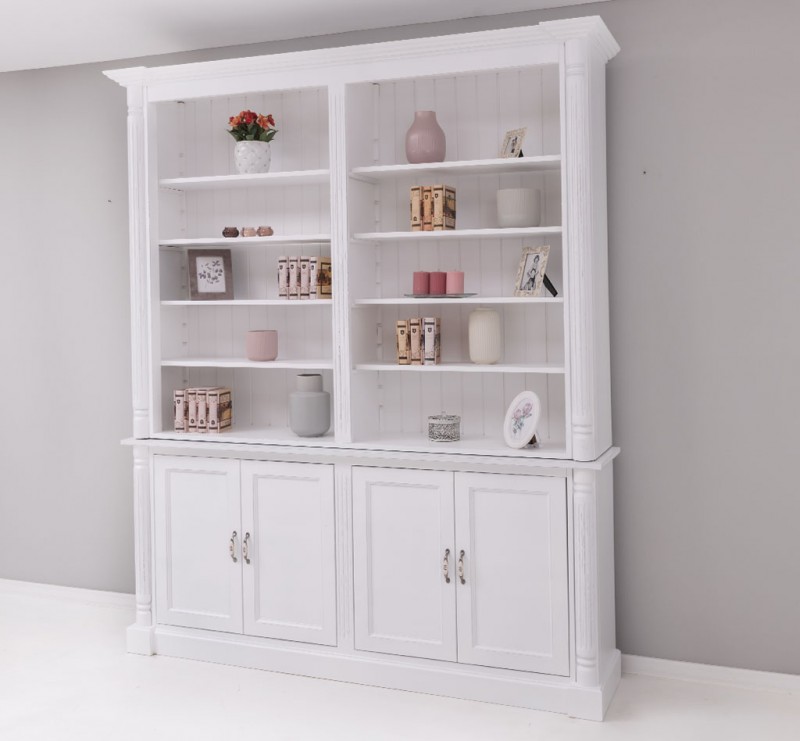 Diese Bücherwand ist aus einer hervorragenden Qualität und das beeindruckende Design ist außergewöhnlich. Richtig gestaltete Accessoires unterstreichen den klassischen Stil dieses Bücherregals! Im oberen Teil verfügt das Produkt über 4 verstellbare Einlegeböden alle 7 cm, die eine großzügige und praktische Präsentationsfläche bieten, und im unteren Teil über großzügige Stauräume hinter 4 Türen.