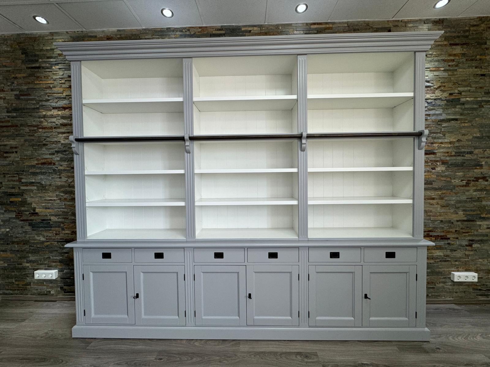Bücherschrank London - Bücherregal im Landhausstil 300cm - 6 Türen Dieses stilvolle Bücherregal beeindruckt mit einer Breite von 3 Metern. Die Einlegeböden im oberen Bereich sind flexibel verstellbar, sodass Sie sie individuell an Ihre Anforderungen anpassen können. Mit ausziehbaren Tablettschubladen. Abmessungen: Länge: 300 cm Breite: 40 cm Höhe: 240 cm Unsere Bücherschränke Entdecken Sie unsere vielfältige Kollektion an Bücherregalen und finden Sie das perfekte Modell für Ihr Zuhause oder Büro. Unsere Regale vereinen hochwertige Materialien, funktionales Design und eine ansprechende Optik. So wird Ihr Bücherregal nicht nur zu einer praktischen Aufbewahrungslösung, sondern auch zu einem dekorativen Highlight. Wählen Sie ein Regal, das Ihre Bücher und persönlichen Schätze stilvoll in Szene setzt und Ihr Interieur bereichert. Mit verschiedenen Designs, Größen und Konfigurationsmöglichkeiten finden Sie garantiert ein Modell, das Ihre Ansprüche erfüllt. Maßanfertigung – Für jeden Raum die perfekte Lösung Jedes Zuhause ist einzigartig, und Standardmaße passen nicht immer zu individuellen Anforderungen. Deshalb bieten wir maßgefertigte Bücherregale an, die sich perfekt in Ihre Räumlichkeiten einfügen. Egal, ob Sie ein Regal für einen kleinen Raum, eine ungewöhnliche Ecke oder einen großzügigen Stauraum benötigen – wir gestalten Ihr Regal nach Maß. Senden Sie uns Ihre Vorstellungen per E-Mail, und unsere erfahrenen Designer erstellen für Sie ein individuelles Angebot, das Ihre Wünsche berücksichtigt.