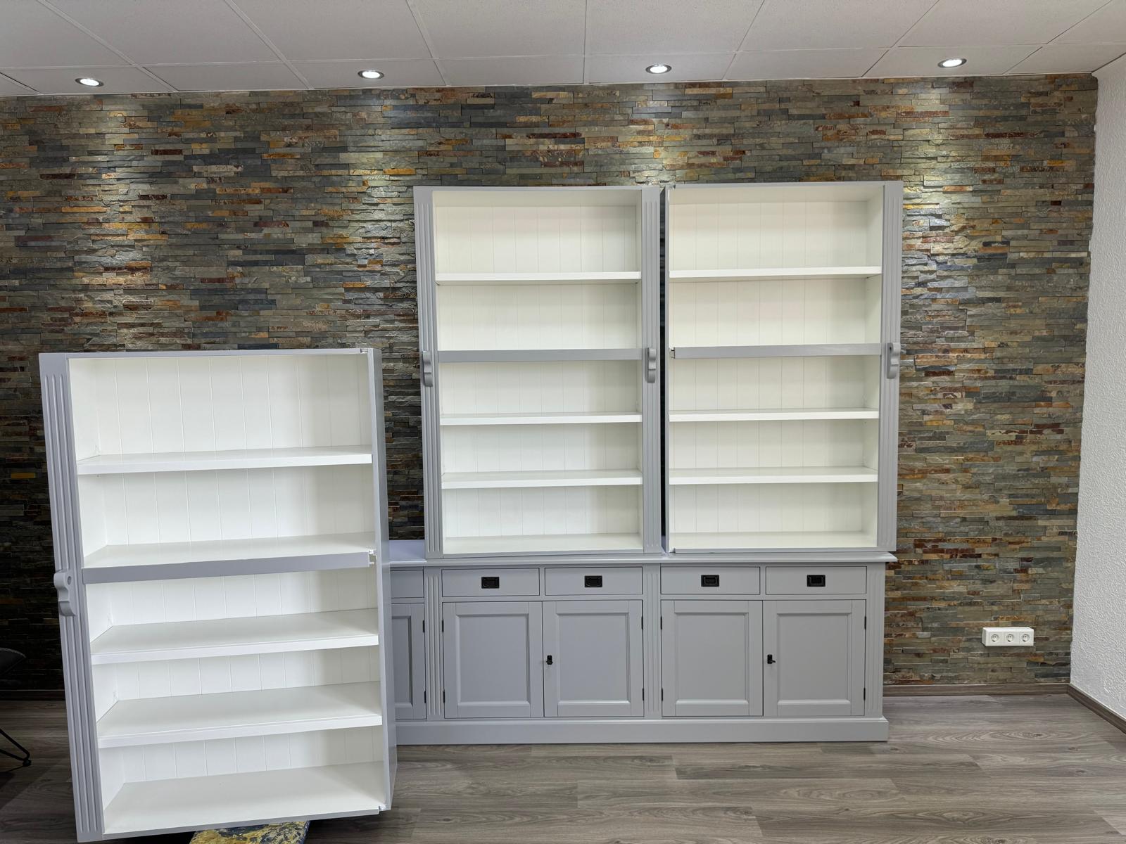 Die zweifarbige Ausführung in Grau/Weiß (auf Wunsch in allen Farben lieferbar) unterstreicht den modernen Landhaus-Charme und fügt sich harmonisch in jedes Wohnkonzept ein – egal ob Wohnzimmer, Arbeitszimmer oder Bibliothek.
