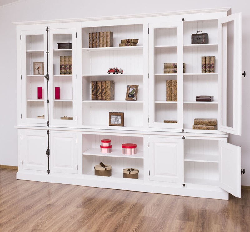 Produktinformationen "Große Bücherwand im Landhaus Stil mit 4 Glastüren 300cm"