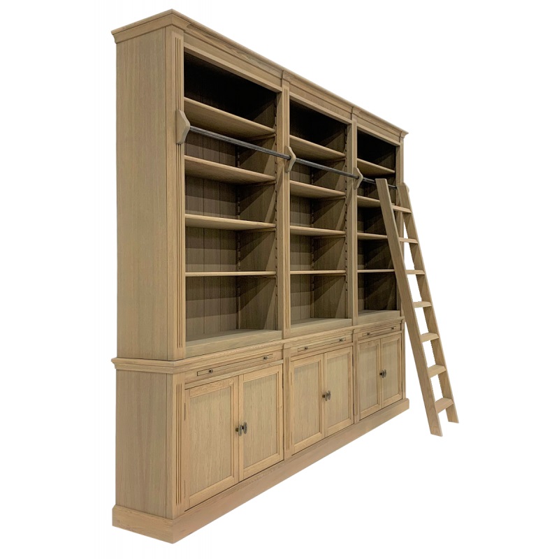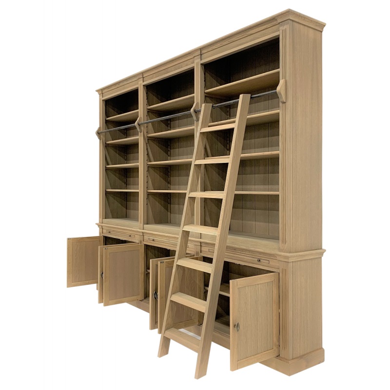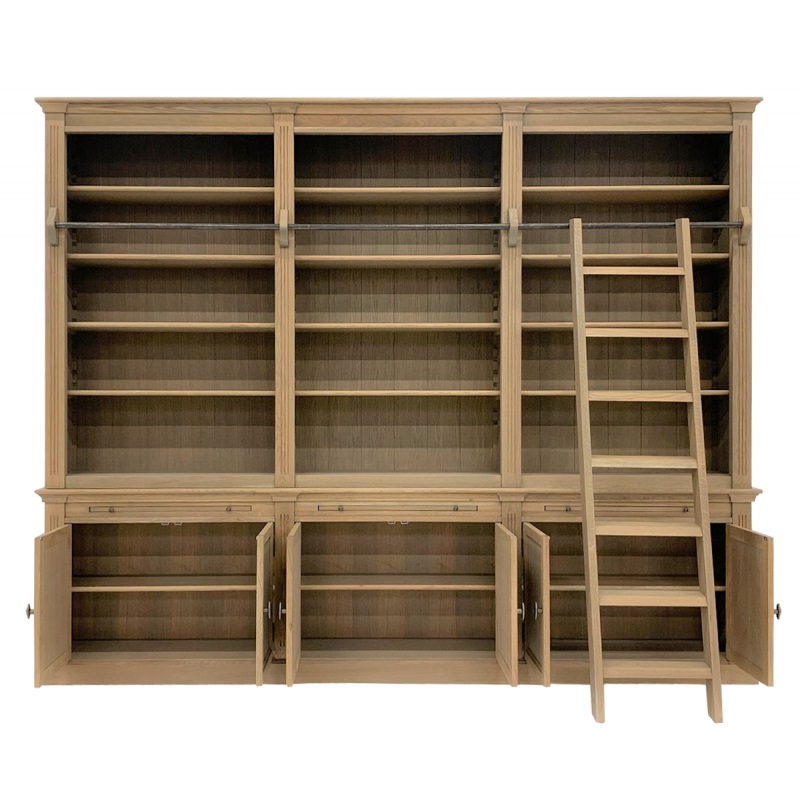 Bücherschrank Cambridge Eiche - Bücherregal im Landhausstil 300cm - 6 Türen und Leiter