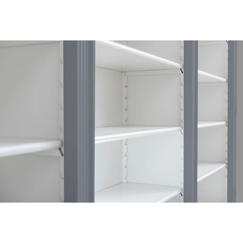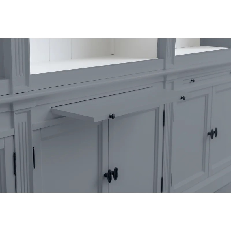 Dieses stilvolle Bücherregal beeindruckt mit einer Breite von 3 Metern. Die Einlegeböden im oberen Bereich sind flexibel verstellbar, sodass Sie sie individuell an Ihre Anforderungen anpassen können. Mit ausziehbaren Tablettschubladen.