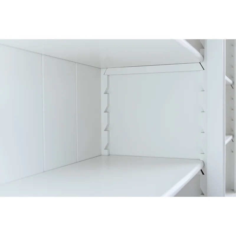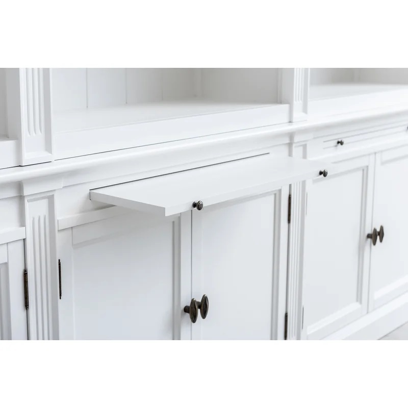 Dieses stilvolle Bücherregal beeindruckt mit einer Breite von 2 Metern. Die Einlegeböden im oberen Bereich sind flexibel verstellbar, sodass Sie sie individuell an Ihre Anforderungen anpassen können. Mit ausziehbaren Tablettschubladen.