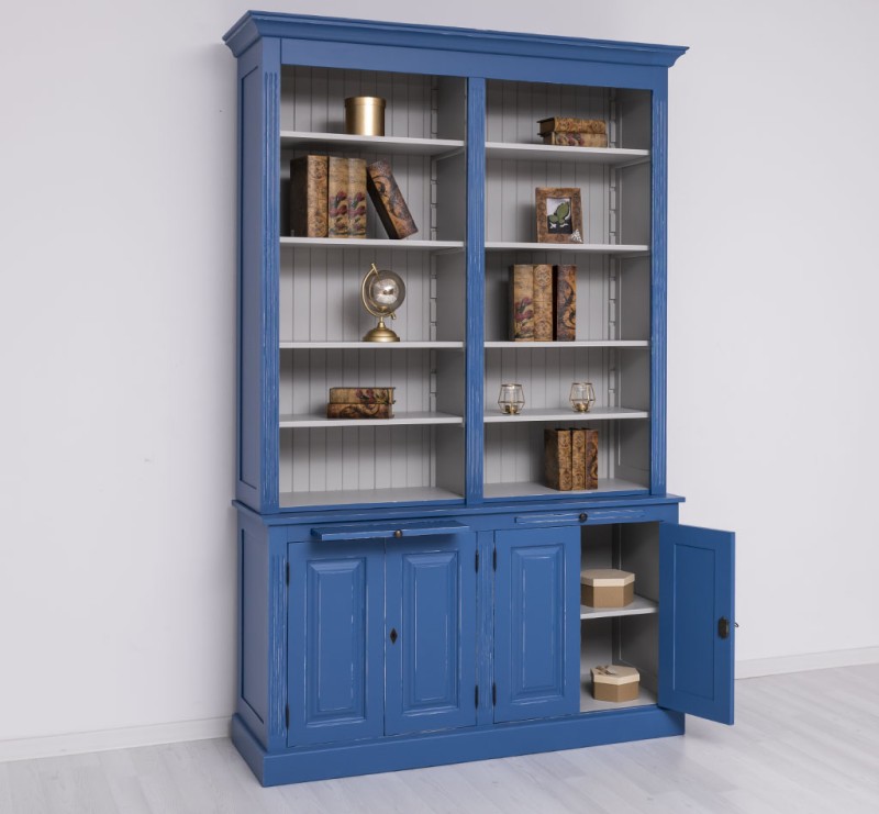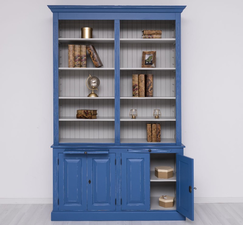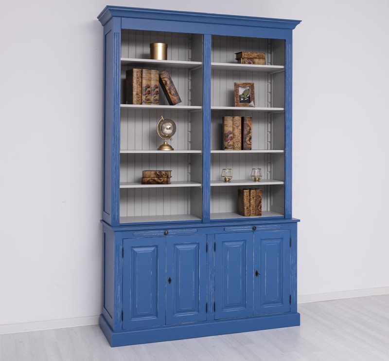Unsere Landhaus Möbel werden aus 100 % massivem Kiefernholz hergestellt. Ein besonderes Highlight sind die zwei schmalen Ausziehregale unter der massiven Arbeitsplatte, die sich über kleine Griffe herausziehen lassen. Neben viel Stauraum im oberen Teil mit viel Platz für Ideen, dekorative Accessoires und Bücher, bietet der untere Stauraum mit Türen und Schubladen noch zusätzliche Ablagemöglichkeiten. Die Beschläge und Griffe sind aus Metall unterstreichen den stilvollen Landhaus Stil. Das kann mit oder ohne Leiter geliefert werden. Jedes Möbelstück kann duch eine individuelle Farbkombination zu Ihrem Unikat werden. Das Bücherregal wird nicht nur Ihr Eigenheim in neuem Glanz erstrahlen lassen, sondern durch seine Langlebigkeit und Anblick Sie auf Dauer erfreuen. Sie werden es Ihnen für die hervorragende Qualität und das beeindruckende Design danken!