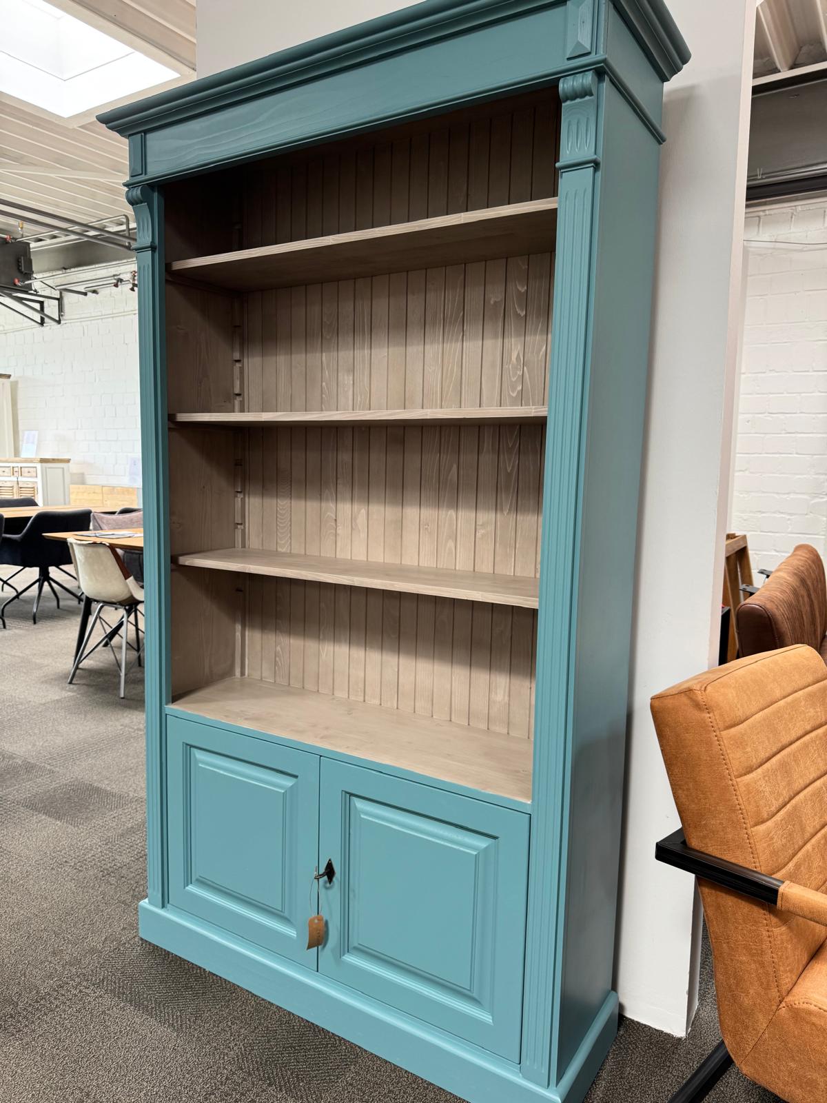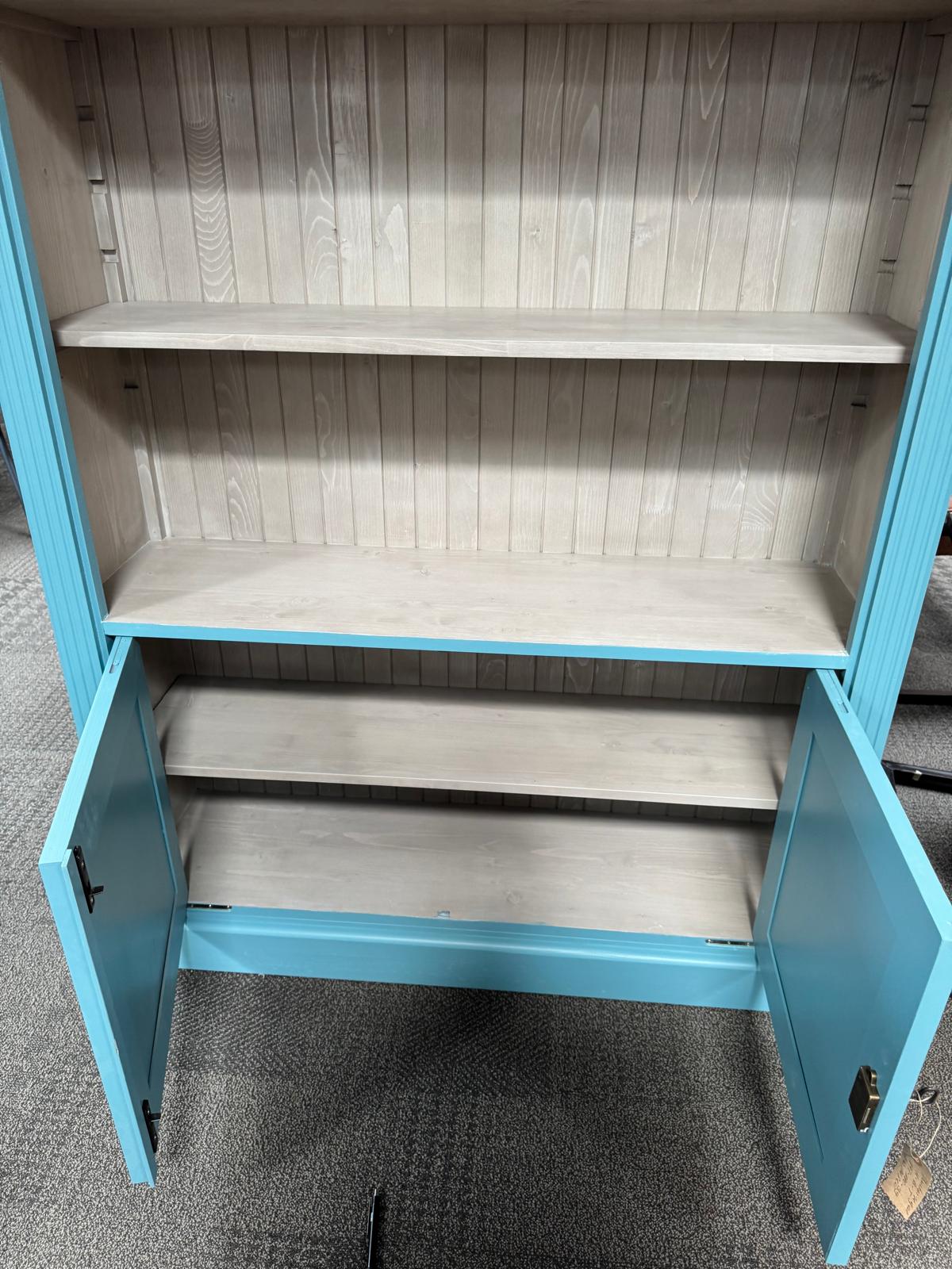 Bücherregal mit 2 Türen und Regalfläche - Landhaus Regal hellblau