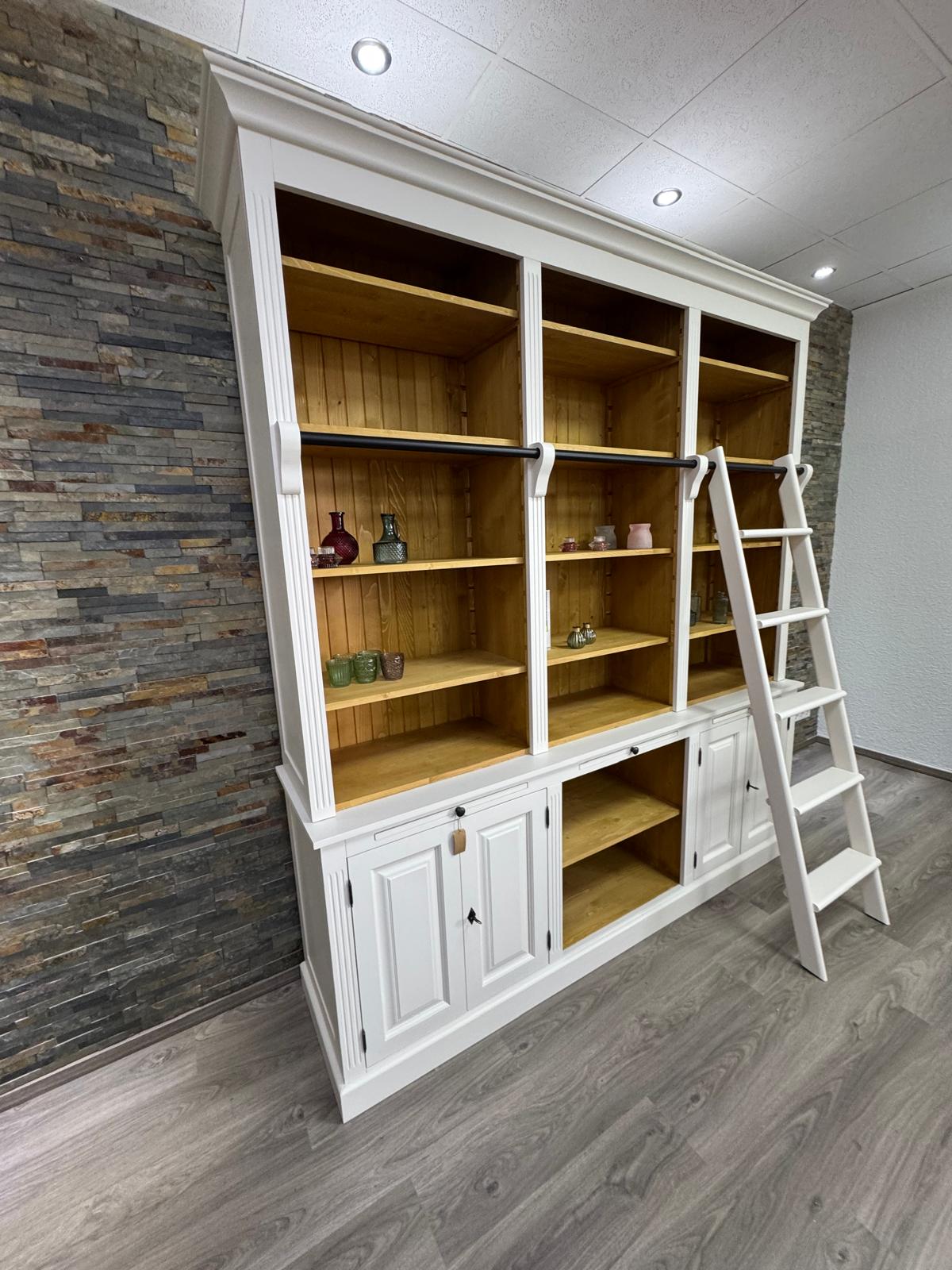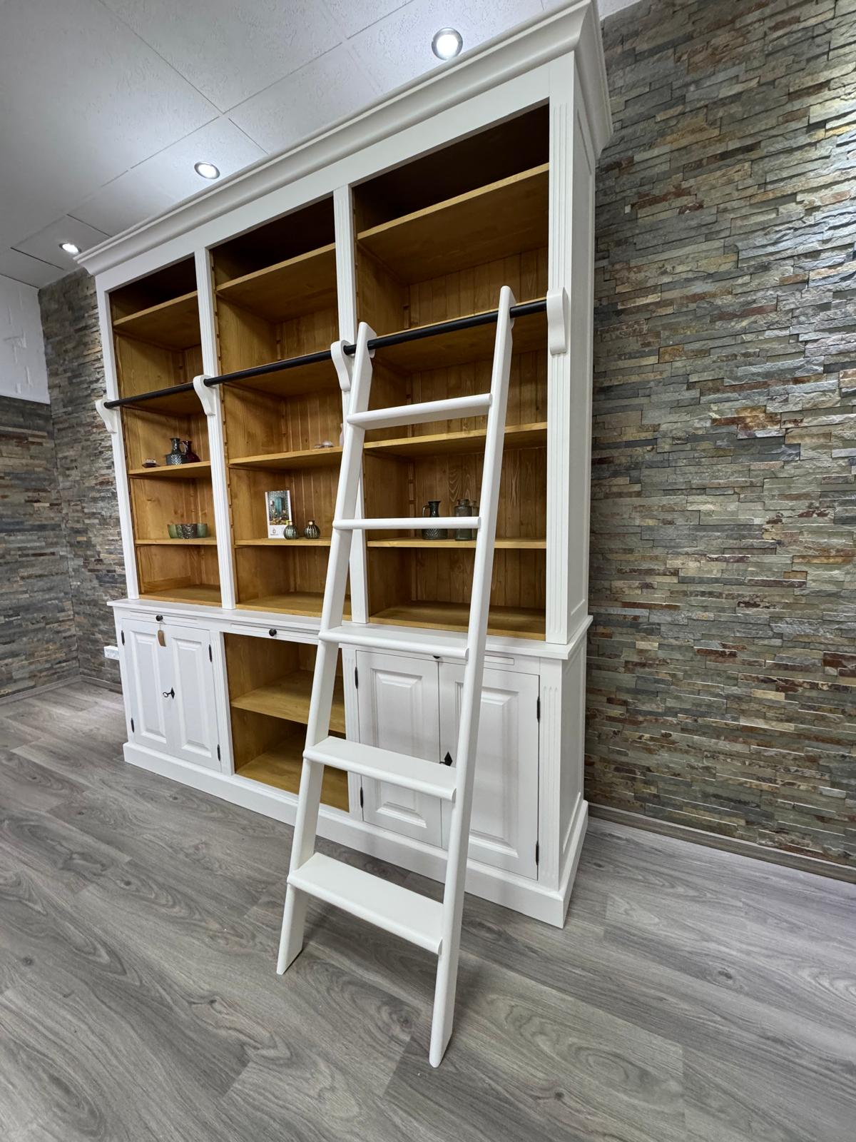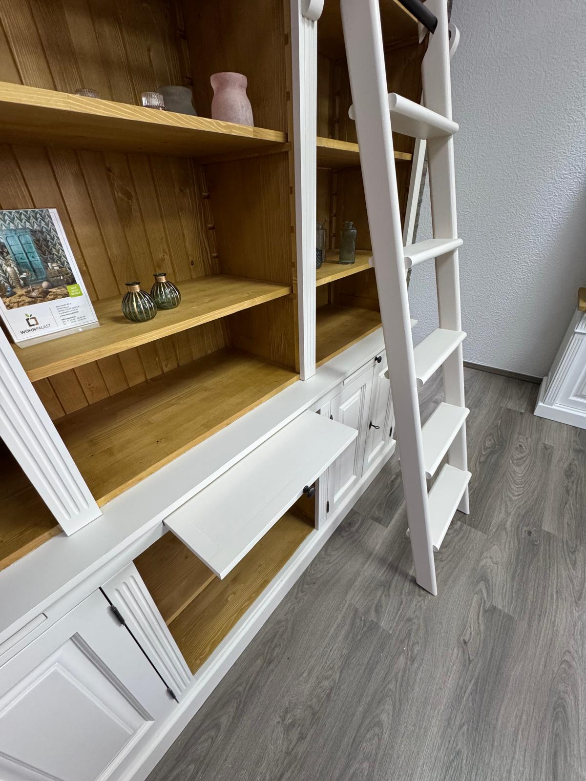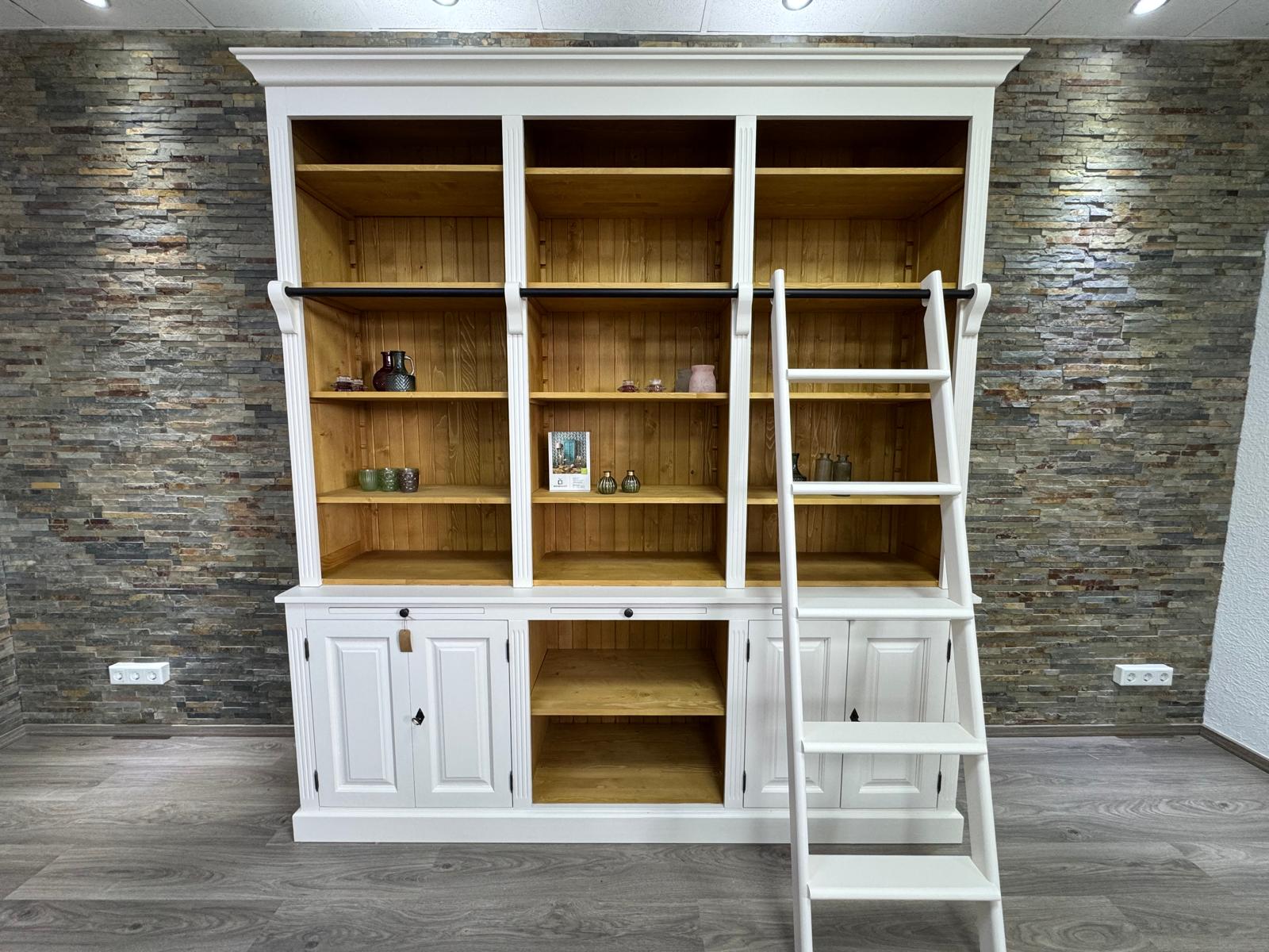 Produktinformationen "Landhaus Bücherschrank aus Massivholz mit Leiter – individuell & langlebig"