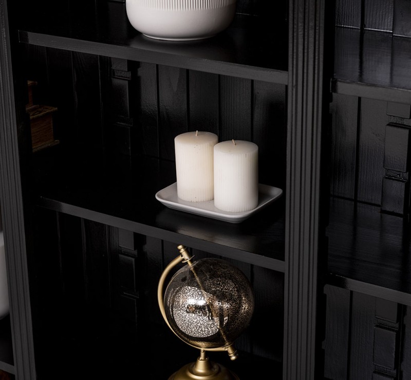 Die verstellbaren Einlegeböden bieten eine großzügige, flexible Präsentationsfläche für Bücher, Dekoration oder Sammlerstücke. Mit seiner imposanten Breite von 180 cm setzt das Regal ein starkes Statement und verleiht jedem Raum Charakter und Stil.