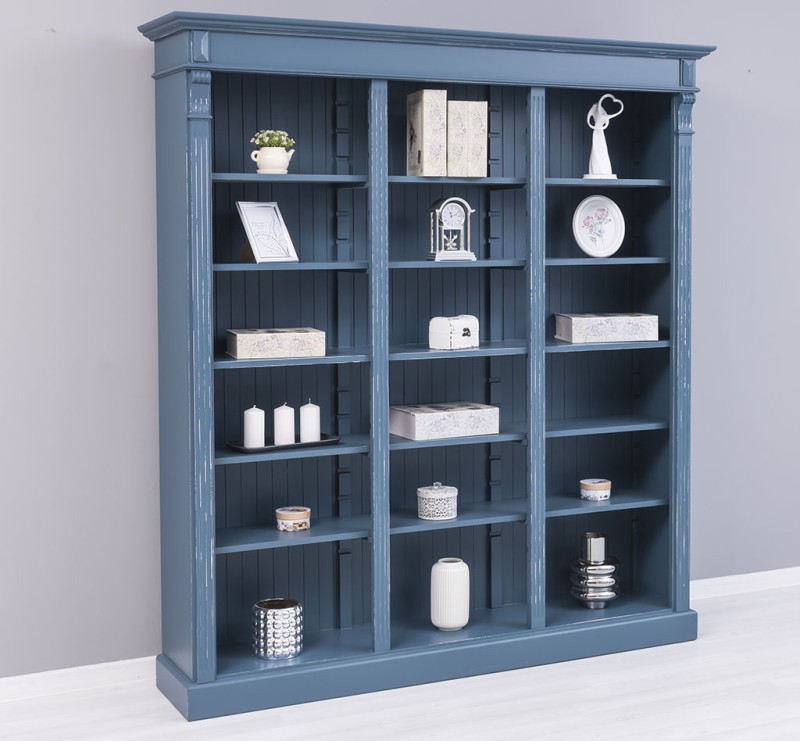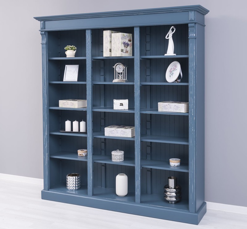 Dreifaches Bücherregal Landhausstil aus Massivholz Kiefer – individuell & hochwertig blau