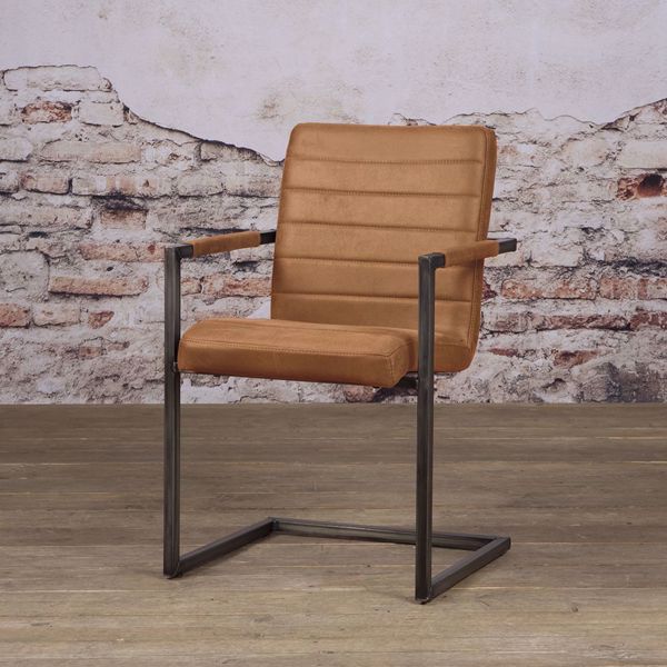 Ein bequemer Design Stuhl mit Armlehnen im Industrie Style. Ein schöner Stuhl mit einem Metallgestell. Den Stuhl gibt es wahlweise in verschiedenen Kunstlederfarben. Das Vintage Kunstleder und das kalte Metallgestell ergänzen sich ideal. Robust, dick und extrem belastbar, ist pflegeleicht und griffig und lässt sich problemlos feucht abwischen. Sie werden Ihre Freude an diesem schönen Industrie-Design Stuhl haben.. Die Abmessungen: ca.: Höhe 88 cm - Breite 52 cm - Tiefe 61 cm. Sitzhöhe: 51 cm Sitztiefe: 44 cm Armhöhe: 67 Montiert: teilweise montiert Gewicht: 12 kg Metallgestell strapazierfähiger Stoff 1 Paket
