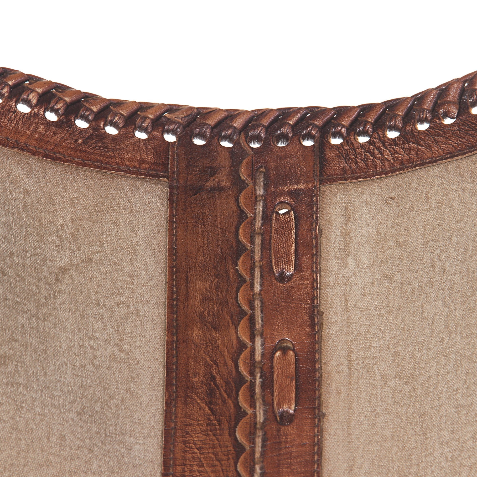 Der Wohnpalast Schmetterling Leder-Baumwolle Stuhl ist ein brauner ländlicher Stuhl. Die Sitzfläche dieses Esszimmerstuhls besteht aus Baumwolle und Leder, die Basis aus Metall. Dadurch passt dieser Stuhl gut in jedes Interieur. Bei unserem Stuhl wurden die Materialien Baumwolle, Leder und Eisen geschmackvoll miteinander kombiniert. Seine Sitzfläche besteht aus beigefarbener Baumwolle, die Nähte wurden mit braunen Lederstreifen verstärkt. Seine natürlichen Materialien und seine derbe Art verleihen ihm einen markanten Charakter. In seiner Form ist er den klassischen Lounge-Möbeln nachempfunden und fügt sich sowohl in den Vintage- als auch in den Industrial-Look.