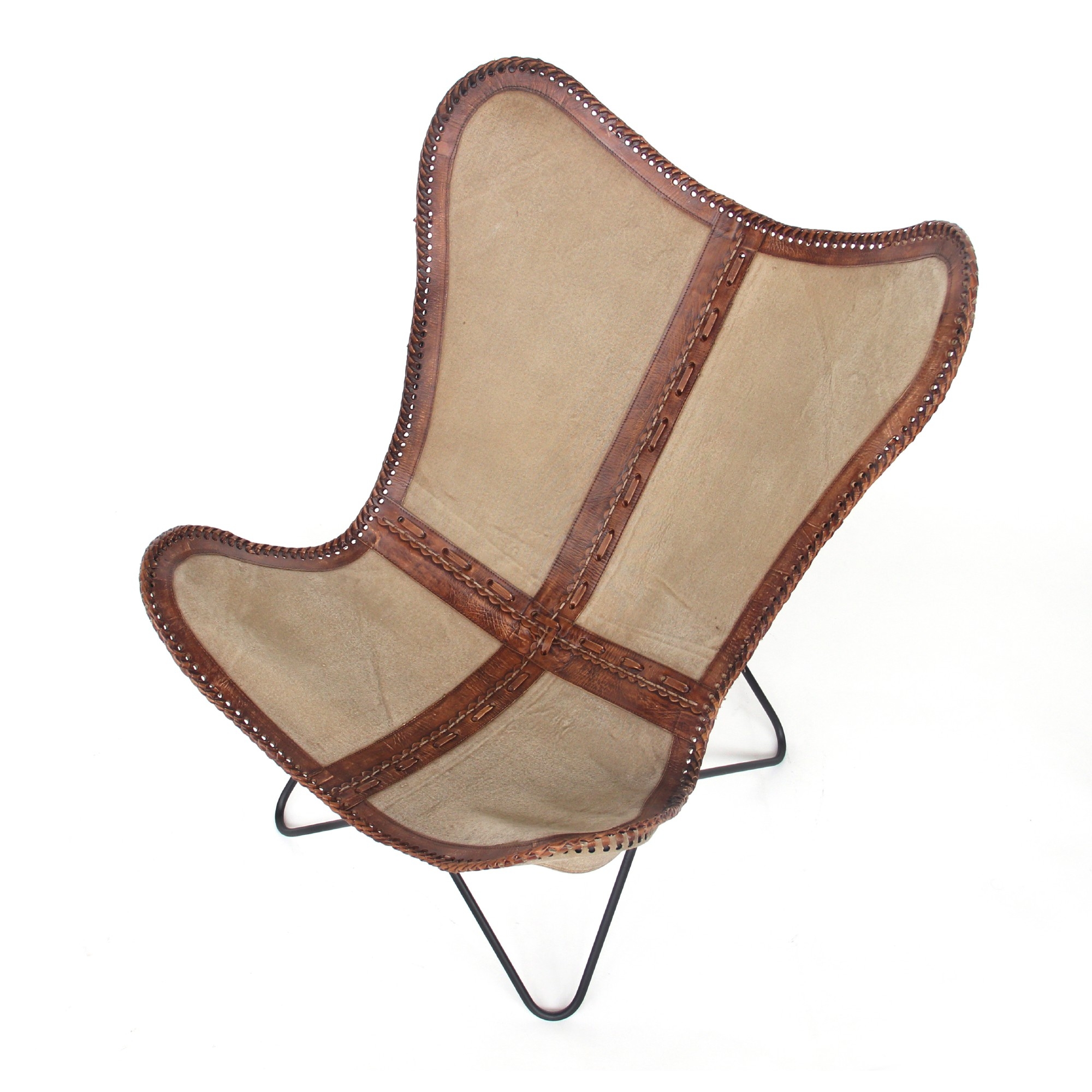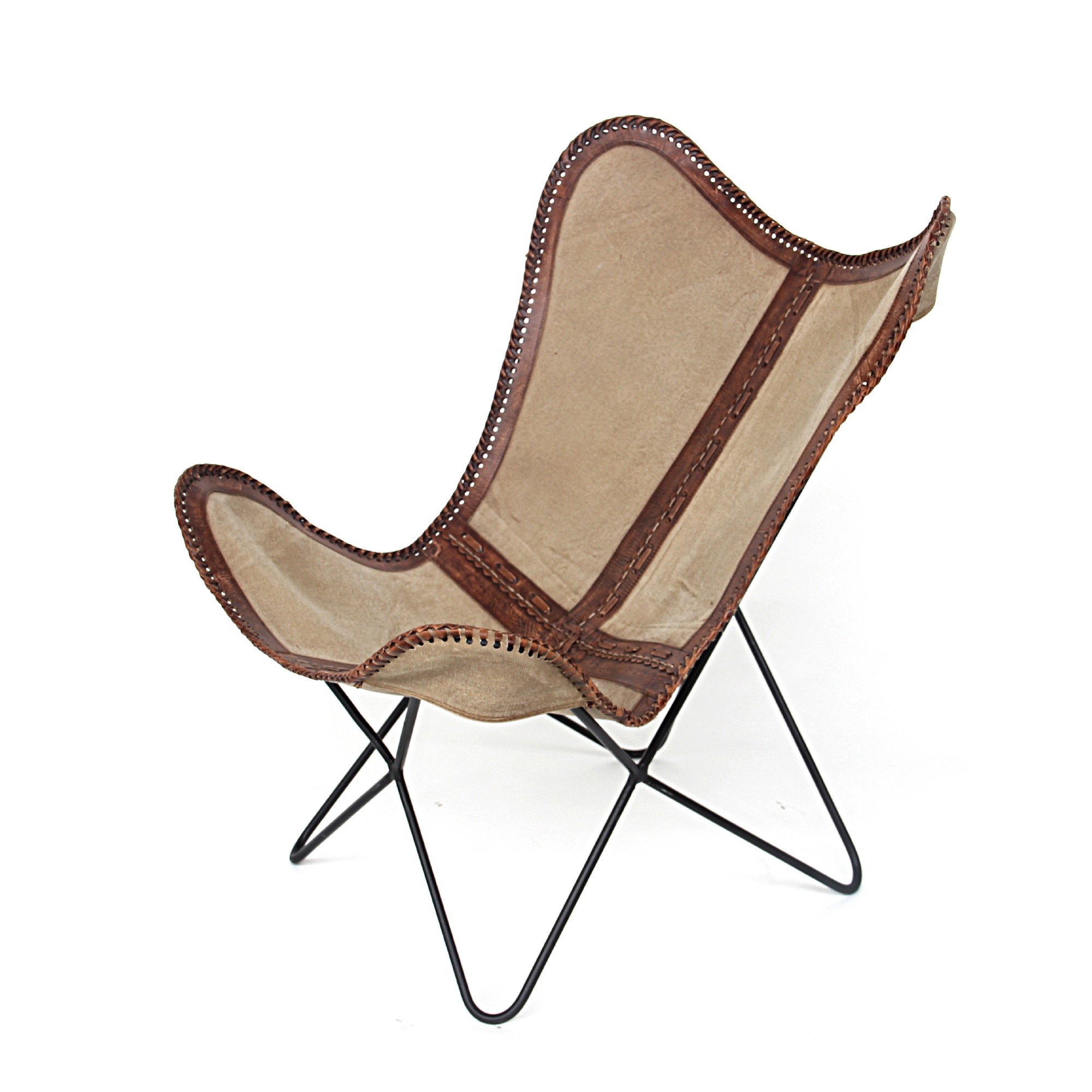 Produktinformationen "Leder-Baumwolle Stuhl Schmetterling Braun / Metallgestell"