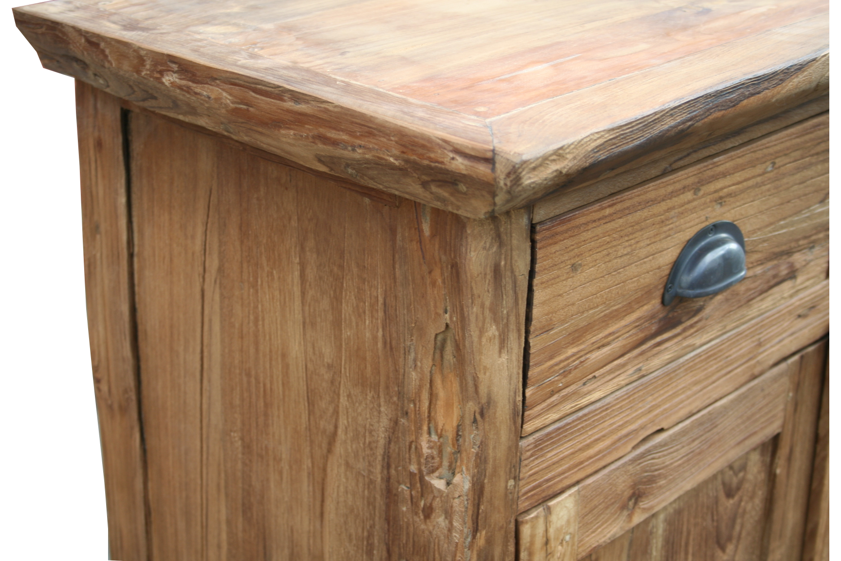Das Vertiko aus recyceltem Teak ist sehr rustikal und hat dadurch einen ganz eigenen Charme. Die massiven Drift Wood -Teakmöbel sind zeitlos attraktiv. Jedes Modell ist ein Unikat. Unregelmäßigkeiten in der Struktur des Holzes lassen den Artikel authentisch wirken. Dieses Möbelstück wurde von traditionellen Handwerkern handgefertigt. Die vorhandenen Gebrauchspuren geben einen kolonialen Charakter und sind bewusst gewollt. Eine Kommode die Sie begeistern wird! Sie passt ideal in jeden Wohnraum, in jedes Schlafzimmer und in jede Diele.