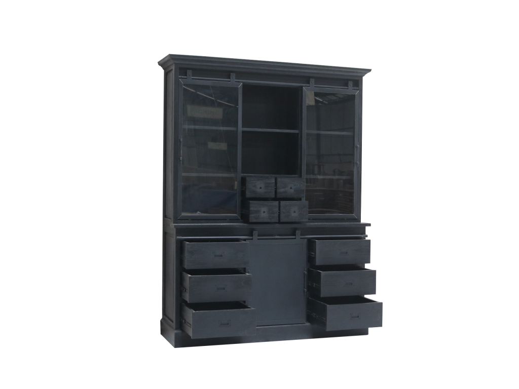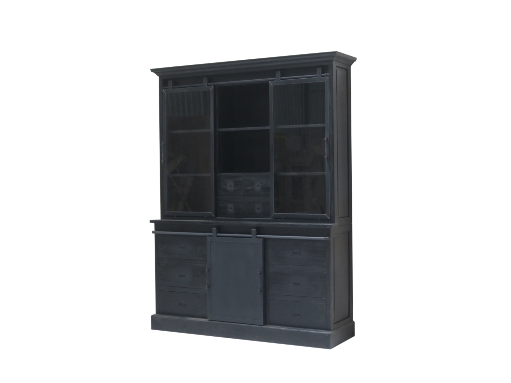 Vitrinen Schrank Roda 190 Teakholz Massiv Schwarz - Buffet Schrank Teak mit Eisen