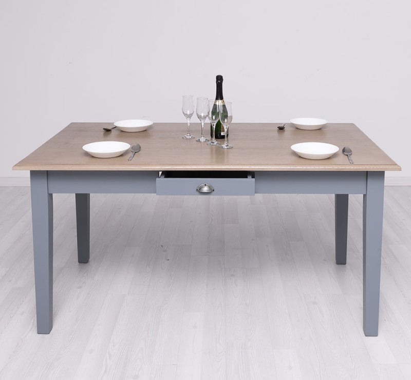 Der Esstisch im Landhausstil wird aus 100% massiven Holz gefertig. Eine Besonderheit ist die kleine Schublade zur Aufbewahrung kleiner Dinge.