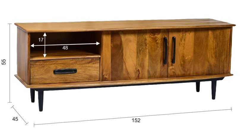 Elias TV-Schrank 152 cm 2 Türen 1 Schublade Mango Holz Sideboard Kommode Retro