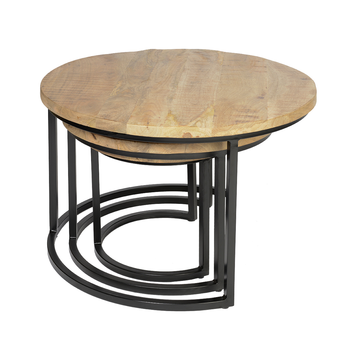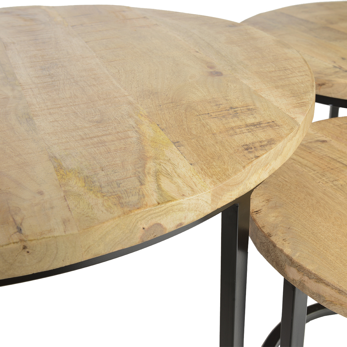 Couchtisch 3er Set Luxemburg aus Mango Holz Metallgestell Beistelltisch Rund Tisch