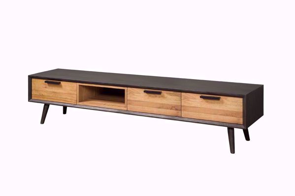 Der Bresso TV-Schrank ist ein markantes Erscheinungsbild unter den vielen Industriemöbeln. Der TV-Schrank Bresso ist innovativ und zeichnet sich durch seinen einzigartigen Grundriss, die massiven Eichentüren und das Retro-Bein aus. Die Türen und Schubladen schließen mit einem Soft-Close-System. Die Farbkombination, bestehend aus zwei warmen Brauntönen, verleiht dem Möbel seinen Charme. Der TV-Schrank hat drei Türen und ein offenes Fach.